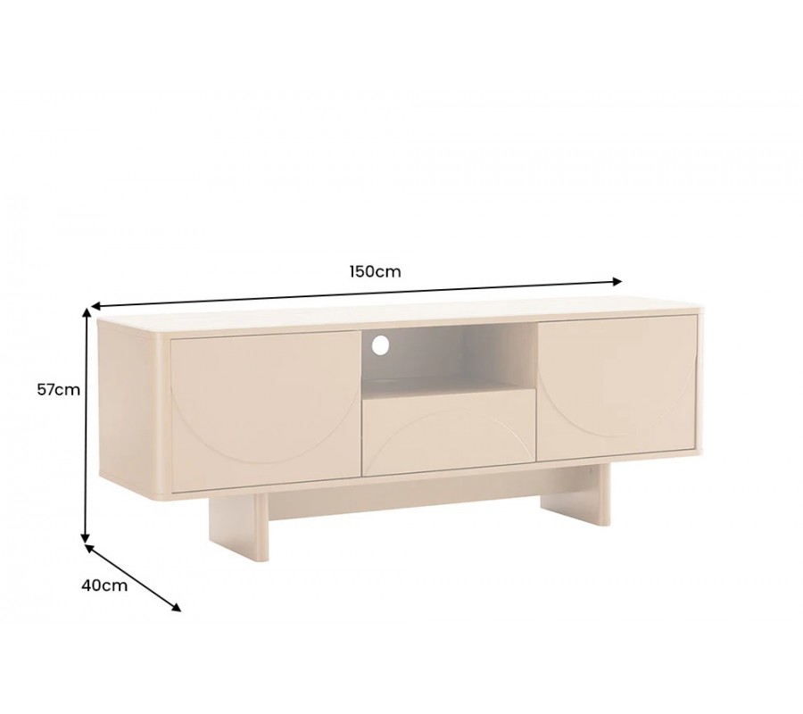 Úložný priestor má elegantne zaoblené rohy a pozostáva z dvoch jednodverových skriniek na stranách, jednej zásuvky v stredne spodnej časti a jednej police s otvorom na vedenie káblom nad ňou. Interiér skriniek je rozdelený na dve policové miesta, čím sa maximalizuje jeho kapacita.