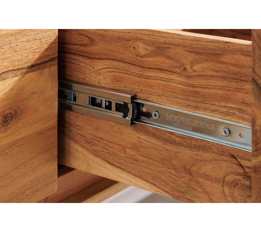 Masívny retro závesný TV stolík Spin je výrazný dizajnový kúsok, ktorý spája atraktívny retro vzhľad s prírodným charakterom masívneho dreva. Vyrobený je z masívneho akáciového dreva v prírodnom hnedom odtieni, ktorý vyniká bohatou kresbou a výraznou štruktúrou, vďaka čomu je každý kus vizuálne jedinečný.