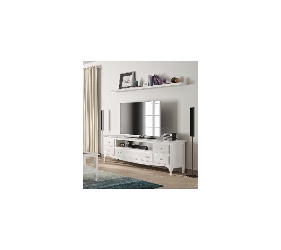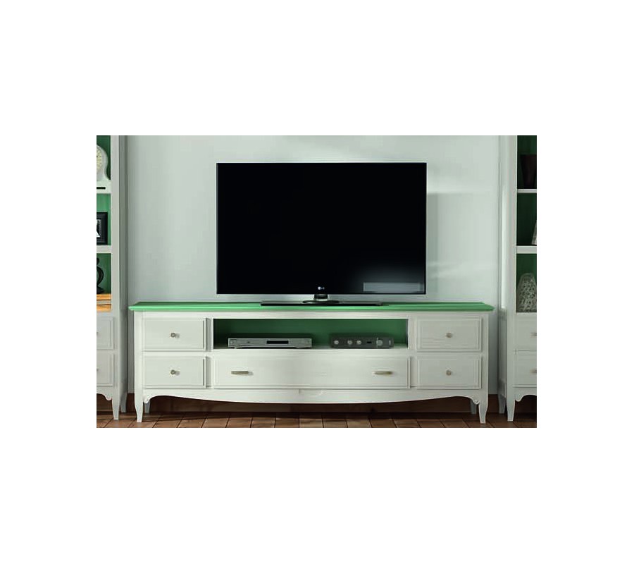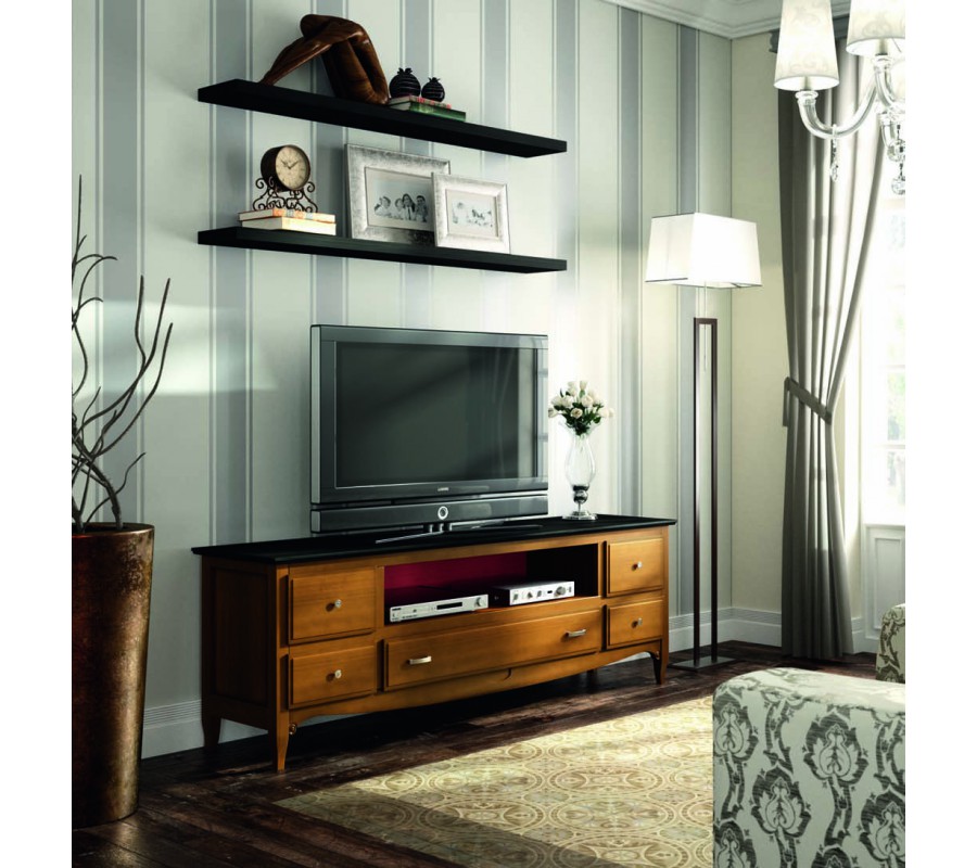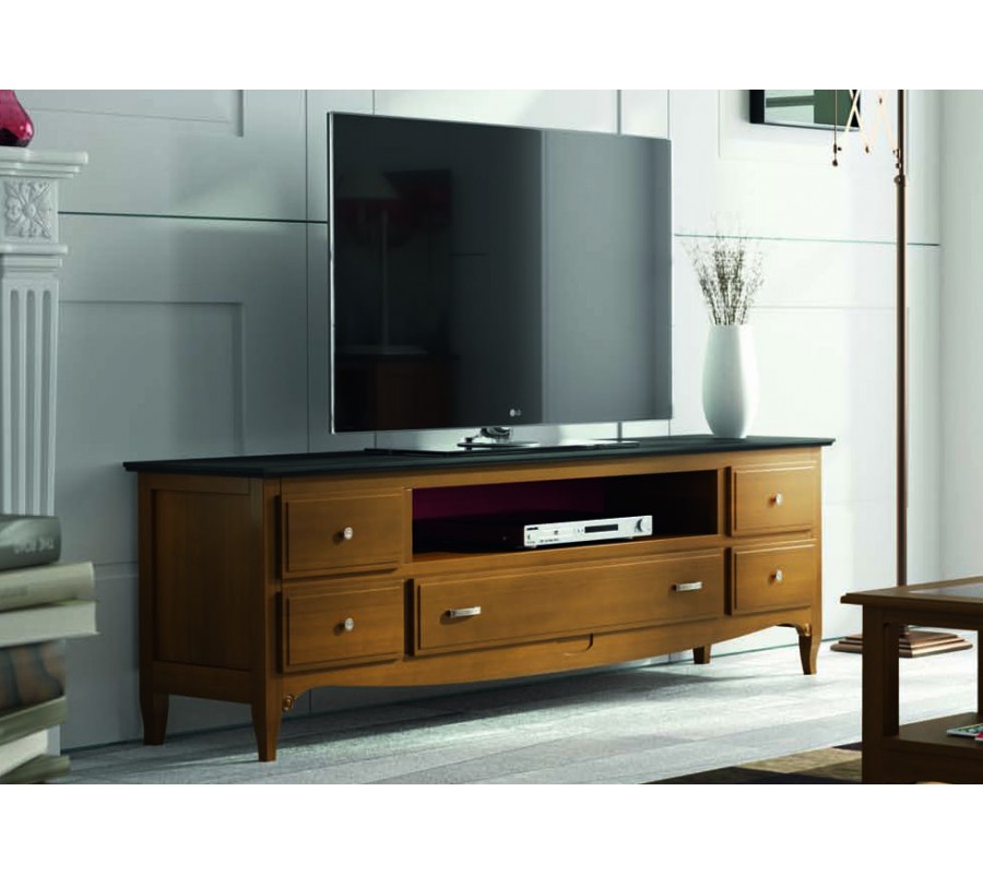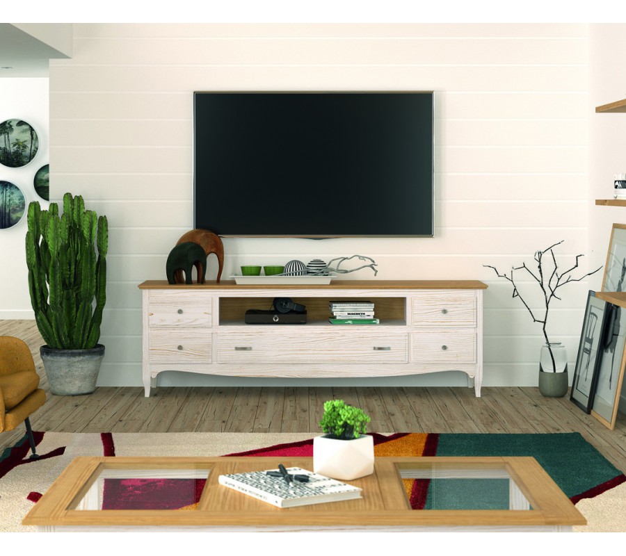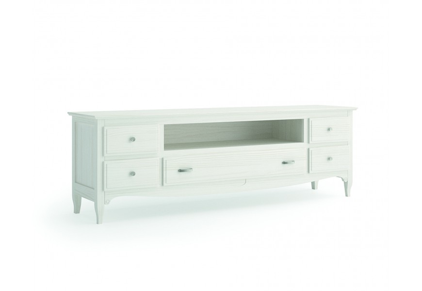 Luxusný štýlový TV stolík Fontana z kvalitnéhomasívneho dreva s otvorenou poličkou a piatimi zásuvkami 190cm