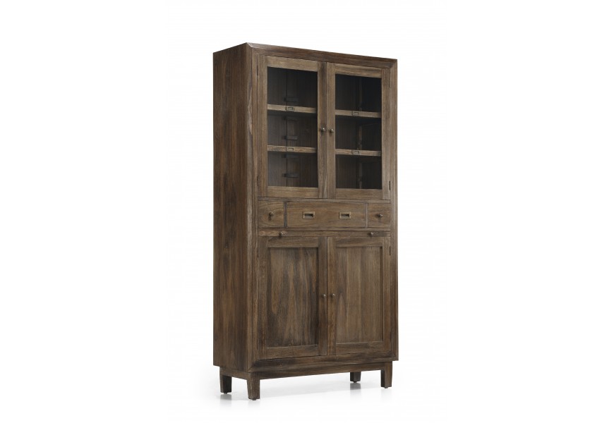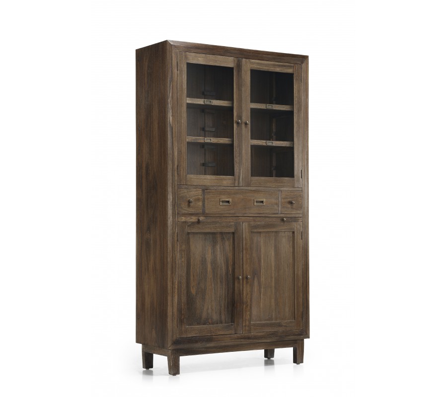 Luxusná koloniálna vitrína z kolekcie SINDORO je elegantná dizajnová vitrína vyrobená z masívneho dreva mindi.