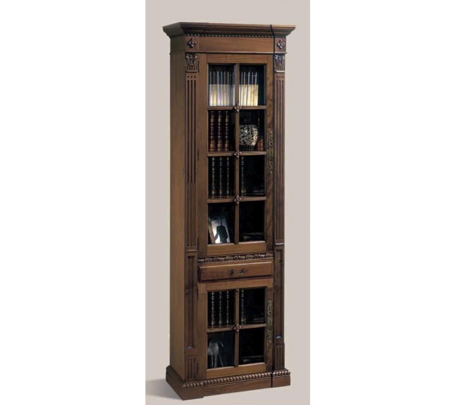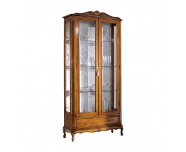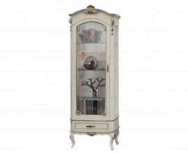 Luxusná vitrína Nuevas formas zaujme predovšetkým vďaka nádhernému ručnému vyrezávanému zdobeniu a ornamentom, vďaka ktorému u vás doma vyčarí krásny rustikálny nádych. Je vhodná na umiestnenie do klasicky ladených priestorov, ktoré potrebujú obohatiť jedinečným a dominantným kúskom. Vitrína disponuje zásuvkou a poličkami so sklenenými dvierkami, ktoré vám poskytnú bohatý úložný priestor na všetky vaše dekorácie či knižné poklady. Vďaka možnosti voľby farebného prevedenia z niekoľkých odtieňov si ju budete môcť poľahky doladiť presne podľa vášho interiéru. Odporúčame vitrínu Nuevas formas kombinovať aj s ďalšími kúskami z našej rovnomennej kolekcie.
