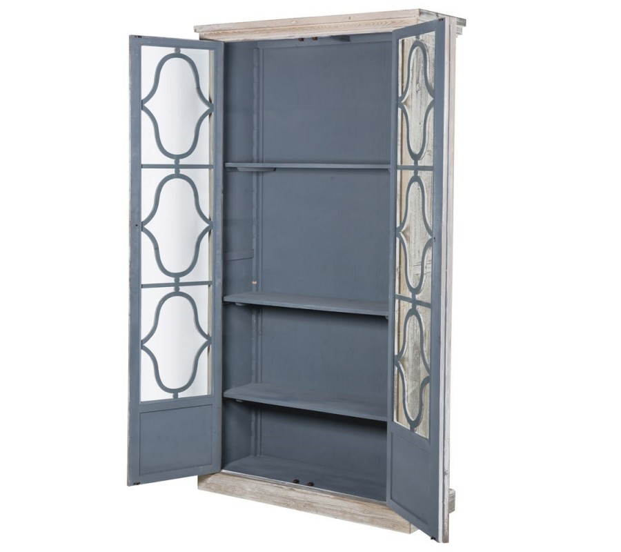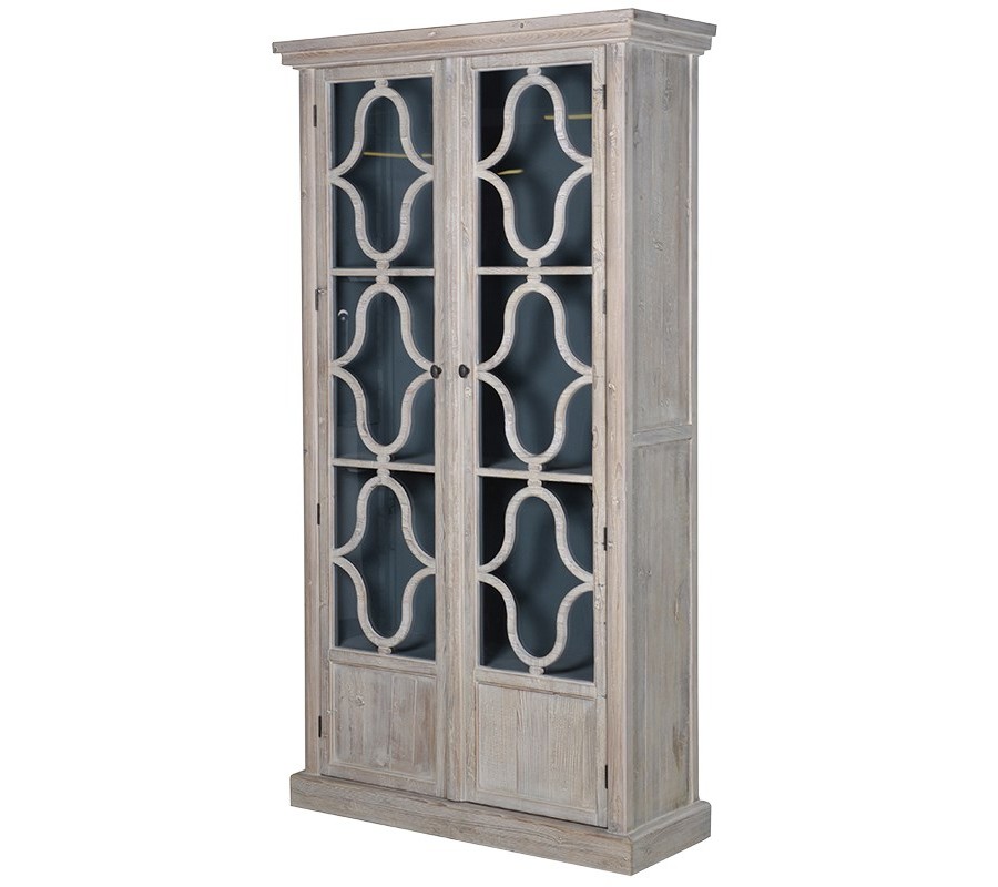 Unikátna rustikálna vitrína z masívneho dreva Vás zaujme predovšetkým vďaka nádhernému vyrezávanému zdobeniu na presklených dvierkach a jedinečnej farbe offwhite, ktorá ladí drevo do biela, no zároveň necháva vyniknúť jeho štruktúru, čím vytvára nezabudnuteľný dojem. Presklené dvierka so zdobením dodávajú vitríne priam éterický nádych. Tento dominantný kúsok je vhodný aj do klasicky ladených priestorov, ktoré osvieži svojím jedinečným vzhľadom, no je taktiež vynikajúco kombinovateľná aj do miestností zariadených v provensálskom či rustikálnom štýle, kde dokonale doplní želanú atmosféru vo Vašej obývacej izbe alebo v jedálni. Vitrína disponuje tromi poličkami s nastaviteľnou výškou, ktoré zabezpečujú dostatok úložného priestoru.