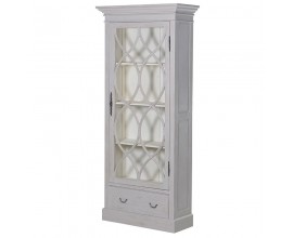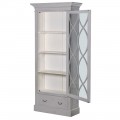 Luxusná vintage sivá vitrína Dorothy so zdobenými dvierkami a zásuvkou s efektom vymytej farby 210 cm