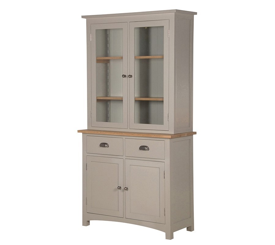 Dizajnová presklená vitrína z kolekcie Wexford Vás zaručene očarí svojim príjemným vzhĺadom vo vidieckom štýle a obohatí Váš domov, vďaka svojim príamym líniám však určite zapadne i do inak štýlovo ladených interiérov. Tento kúsok z masívneho dreva Vás taktiež poteší množstvom úložného priestoru, ktorý ponúka v podobe dvoch zásuviek a viacerých políc skrytých za dvierkami.