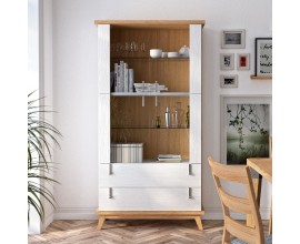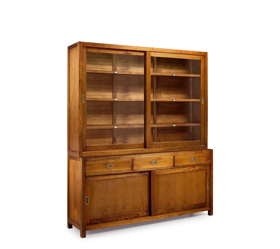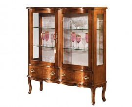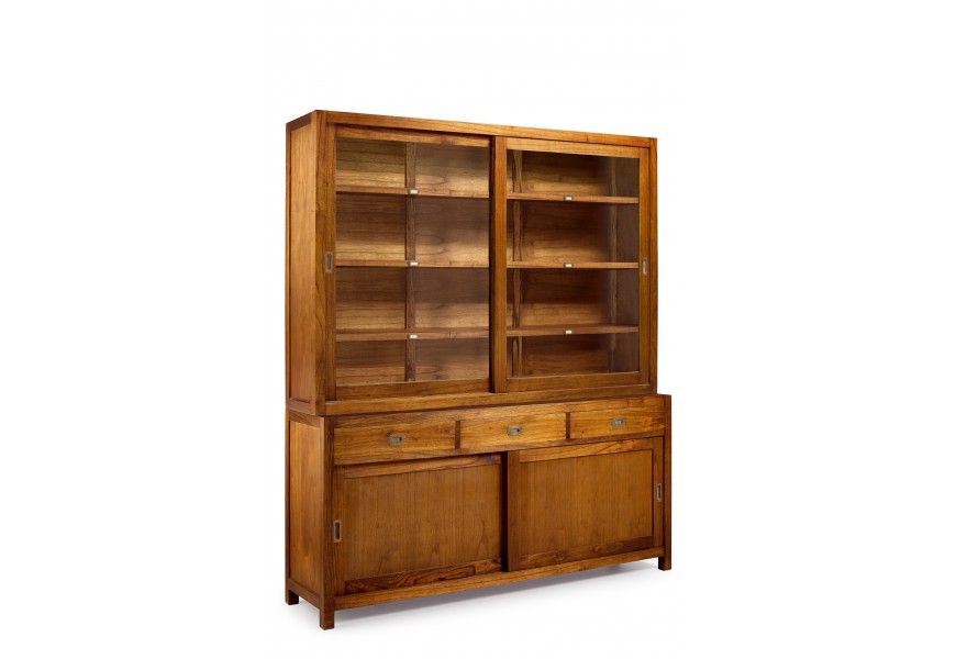Klasický masívny príborník Star so sklenenými dvierkami, poličkami a zásuvkami 210cm