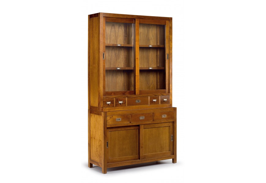Masívny luxusný príborník s vitrínou Star s dvierkami a zásuvkami 217cm