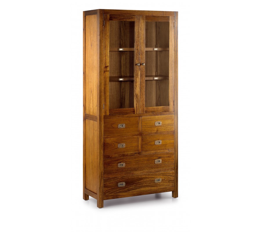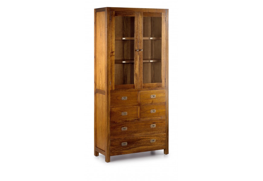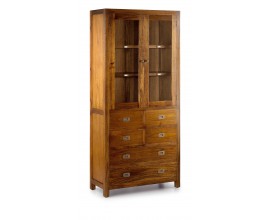 Masívna dvojitá vitrína Star z dreva so šiestimi zásuvkami a sklenenými dvierkami 190cm