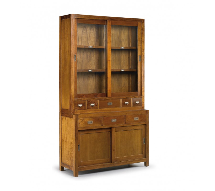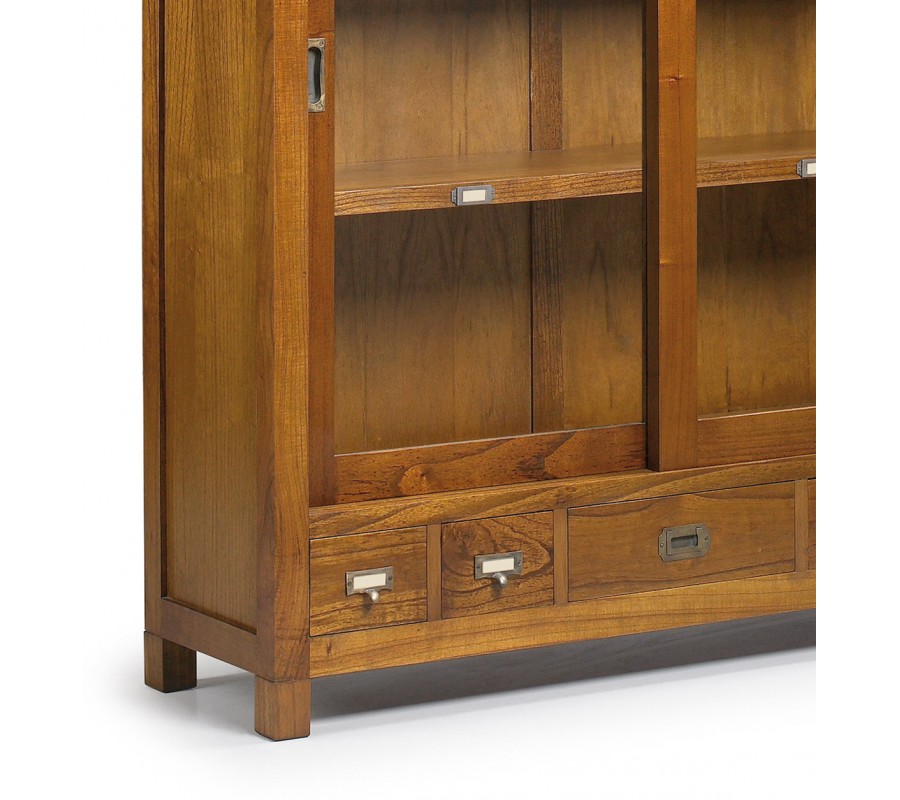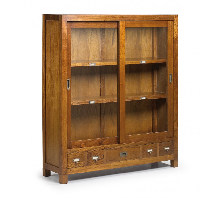 Dizajnová veľká vitrína Star z masívneho dreva s posuvnými dverami a piatimi zásuvkami 137cm