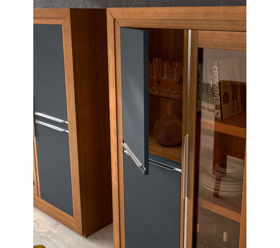 Luxusná vitrína Véneto je nadčasovým kúskom, ktorý zapadne predovšetkým do moderne a minimalisticky ladených interiérov. Je vyrobený z kvalitného masívneho dreva, ktorého farebné prevedenie si môžete zvoliť z ponuky nášho vzorkovníka. Môžete si tak vytvoriť originálny kúsok presne podľa vašich predstáv, ktorý sa vo vašich priestoroch bude skvelo vynímať. Vitrína disponuje poličkami, ktoré sú na jednej strane chránené drevenými dvierkami a na druhej dvierkami zo skla. Je tak ideálna na vystavenie dekorácií, ale aj uschovanie kníh, dokumentov či iných predmetov. Kombináciou s ďalšími kúskami z kolekcie Véneto si môžete vytvoriť luxusnú obývačkovú stenu, ktorá bude naozaj jedinečná a do vášho interiéru krásne zapadne!