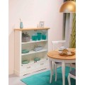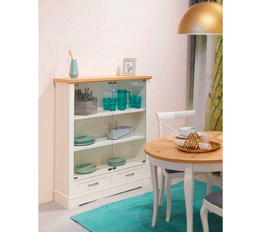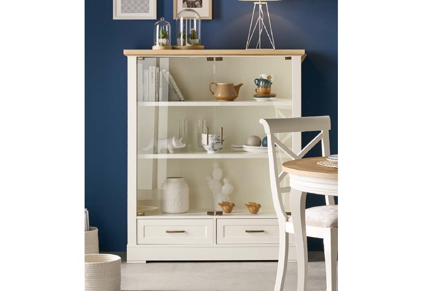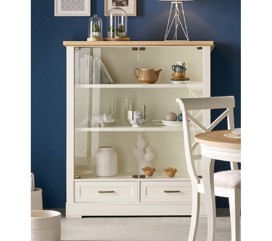 Exkluzívna moderne vyzerajúca vitrína TIRA je vyrobená z masívu bukového dreva. Jednoduché línie a kombinácia so sklom tvorí moderný nádych tejto vitríny. Kvalitné bukové drevo je zárukou kvality a dlhej životnosti vitríny. Vitrínu TIRA je možné vyrobiť v bielom a sivom prevedení. Vrchná doska avšak ostáva v pôvodnej farbe bukového dreva. O praktickú stránku tejto vitríny sa stará dostatok úložného priestoru v podobe 2 zásuviek a dostatok odkladacích plôch.
