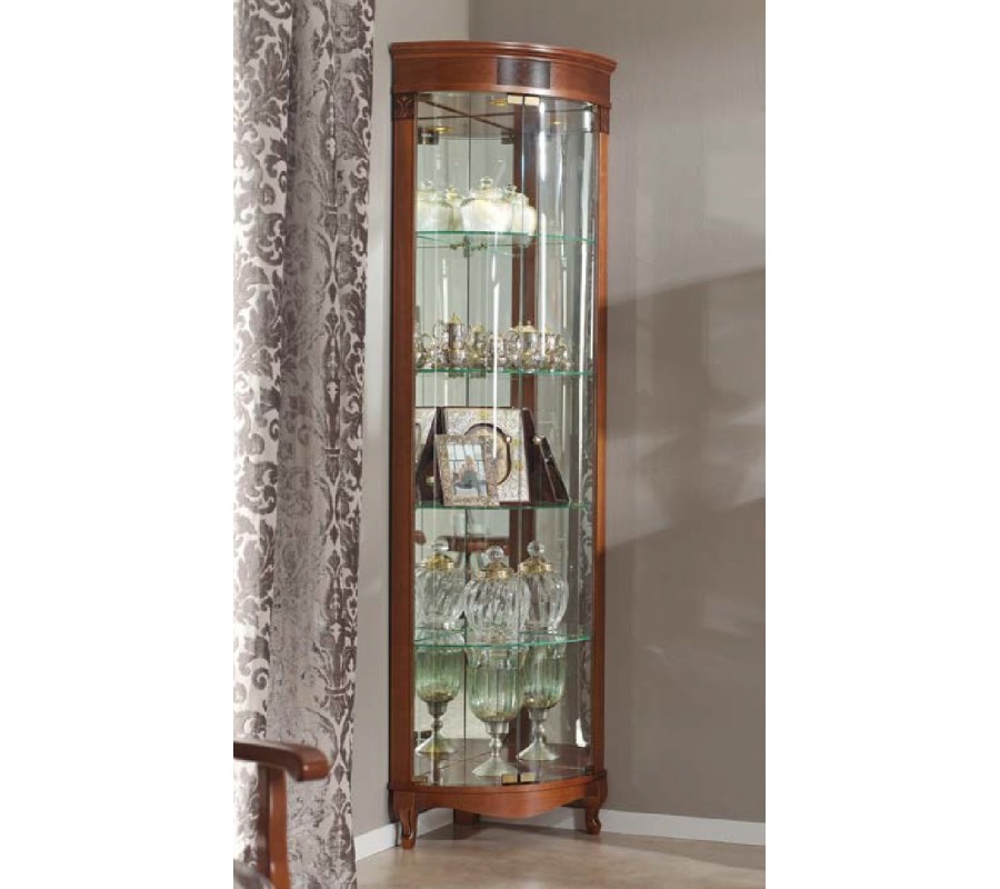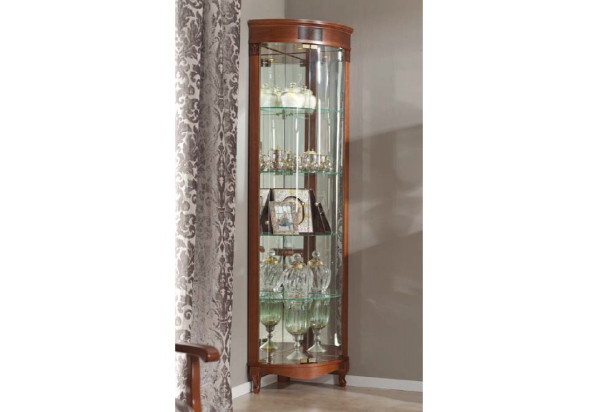 Exkluzívna rohová vitrína z kolekcie nábytku CASTILLA je predstaviteľom nadčasového rustikálneho nábytku vysokej kvality. Základná konštrukcia zhotovená z kvalitného masívu bukového dreva je vo farebnej variante Čerešňa a Orech doplnená o ozdobné prvky vytvorené vkladaním drobných častí z dreva odlišného odtieňa do povrchu (tzv. technikou marketérie). Rovnako ako všetok nábytok kolekcie CASTILLA, je možné aj tento kúsok vyhotoviť v štyroch farebných prevedeniach. Produkt na fotografií je vo farebnom prevedení orech.