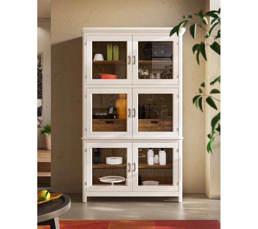Luxusná masívna vitrína Cerdena s poličkami so sklenenými dvierkami 203cm