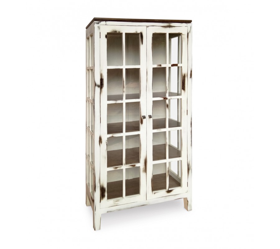 Maximálne dizajnová vitrína z kolekcie masívneho nábytku Blanc Vás osloví najmä svojím dizajnovým prevedením založeným na využití bieleho náteru, ktorý necháva vyniknúť prirodzenej kresbe masívneho dreva mindi.  Masívny nábytok nastupuje čoraz rýchlejšie do popredia v rámci trendov v interiérovom dizajne, preto tento moderný kúsok s nádychom koloniálneho štýlu vo svojom domove zaručene oceníte, rovnako  ako i úložný priestor, ktorý Vám ponúka.