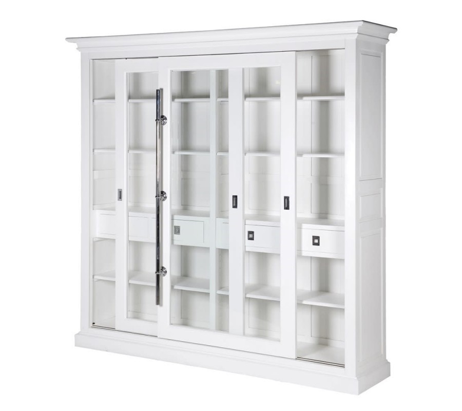 Jedinečná vitrína Wielton Blanc z našej Art-deco kolekcie je kombináciou čistého dizajnu a decentných Art-deco prvkov. Je vyrobená z mahagónového dreva v kombinácii s MDF, vďaka tejto kombinácii je stabilita vitríny väčšia. Táto vitrína je naozaj praktická, nakoľko sa v nej nachádza mnoho úložných priestorov. Vitrína vyniká svojou veľkosťou, pozostáva z dvoch častí v ktorých sa nachádzajú poličky a štyri šuplíky. Na vitríne sa nachádzajú taktiež kovové rukoväte v striebornej farbe, ktoré sú v kontraste s elegantnými líniami nábytku. Vďaka nadčasovej bielej farbe možno vitrínu ľahko kombinovať, netreba sa báť výraznejších farieb ako je napríklad sýta žltá, bordová, kráľovská modrá. Neváhajte vitrínu kombinovať s ďalšími nábytkami z Wielton Blanc kolekcie, s ktorými viete vytvoriť okúzľujúce interiéry v modernom, alebo Art-deco štýle. Odporúčame priestor vyplniť s bytovými doplnkami, v ktorých sa nachádzajú strieborné detaily, alebo prvky.