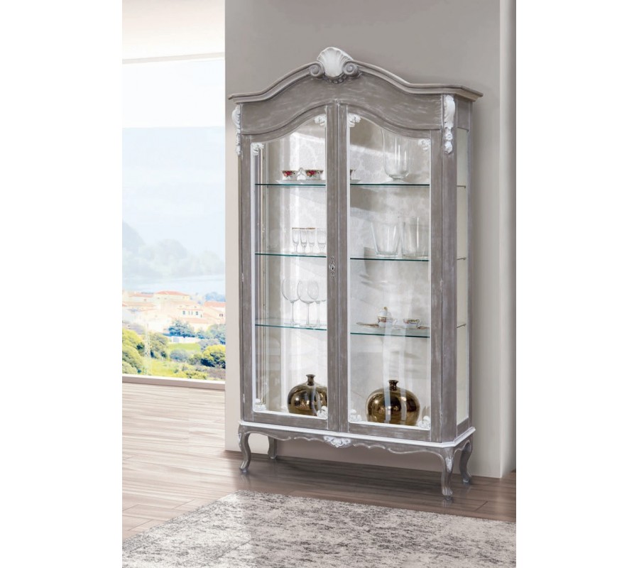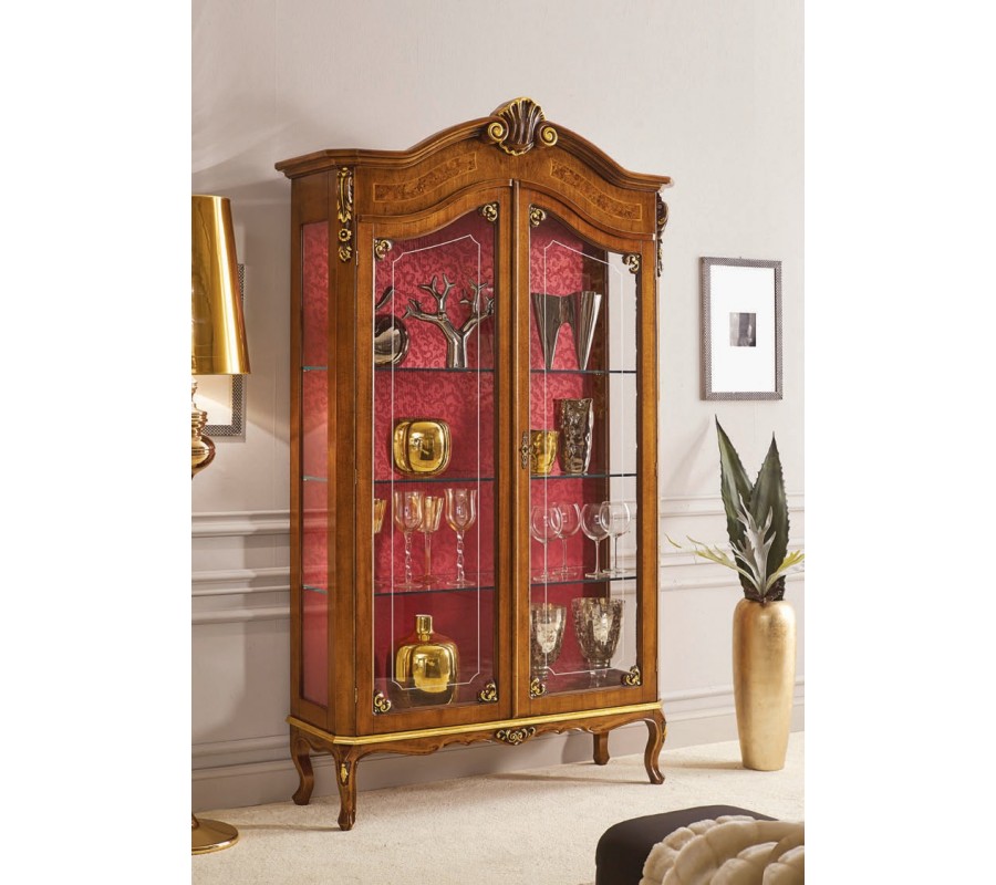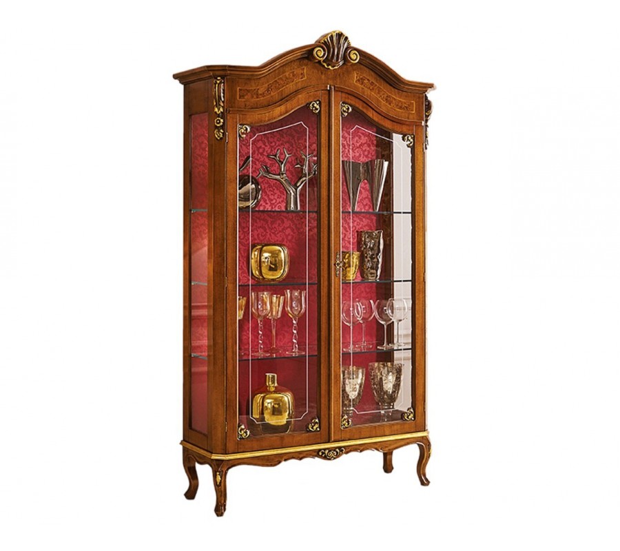Luxusná klasická presklená dvojdverová vitrína Clasica z dreveného masívu s barokovou výzdobou a chippendale nožičkami 210 cm