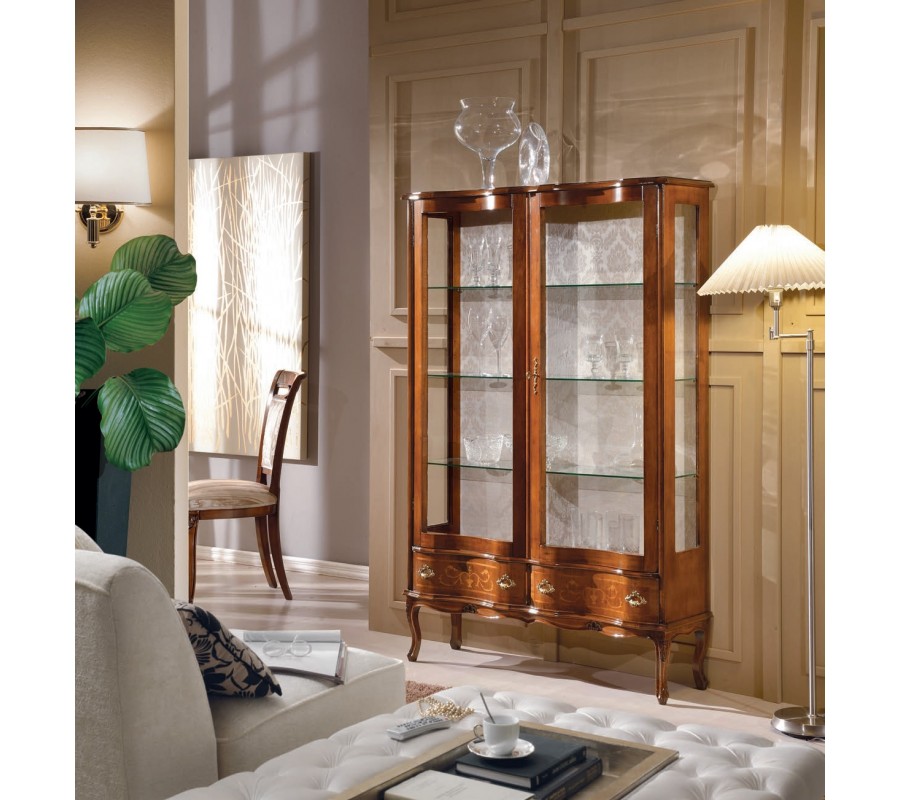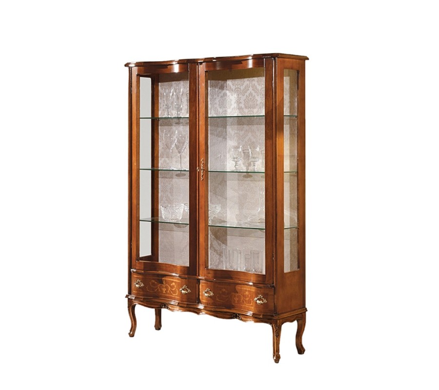 Luxusná rustikálna dvojdverová vitrína Clasica s dvomi zásuvkami s barokovým zdobením 170 cm