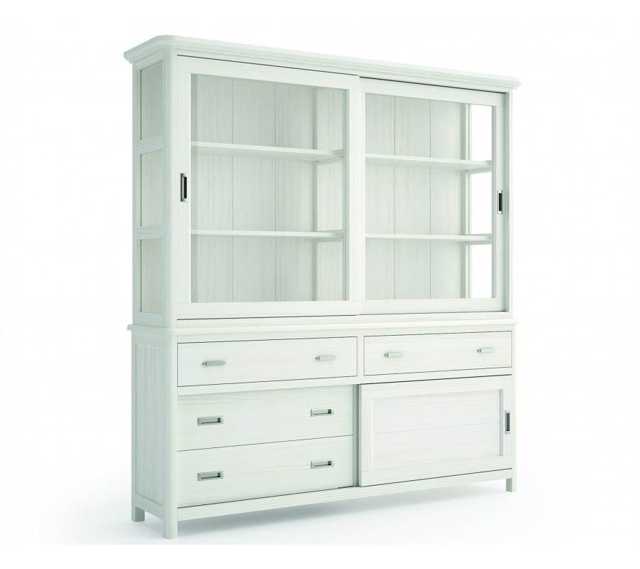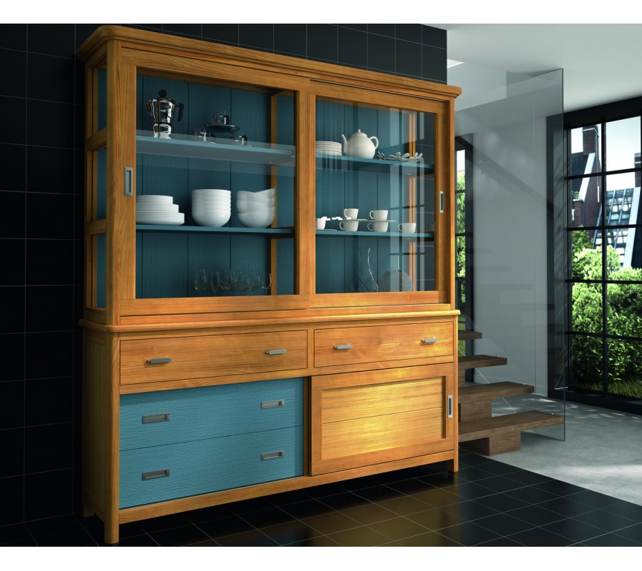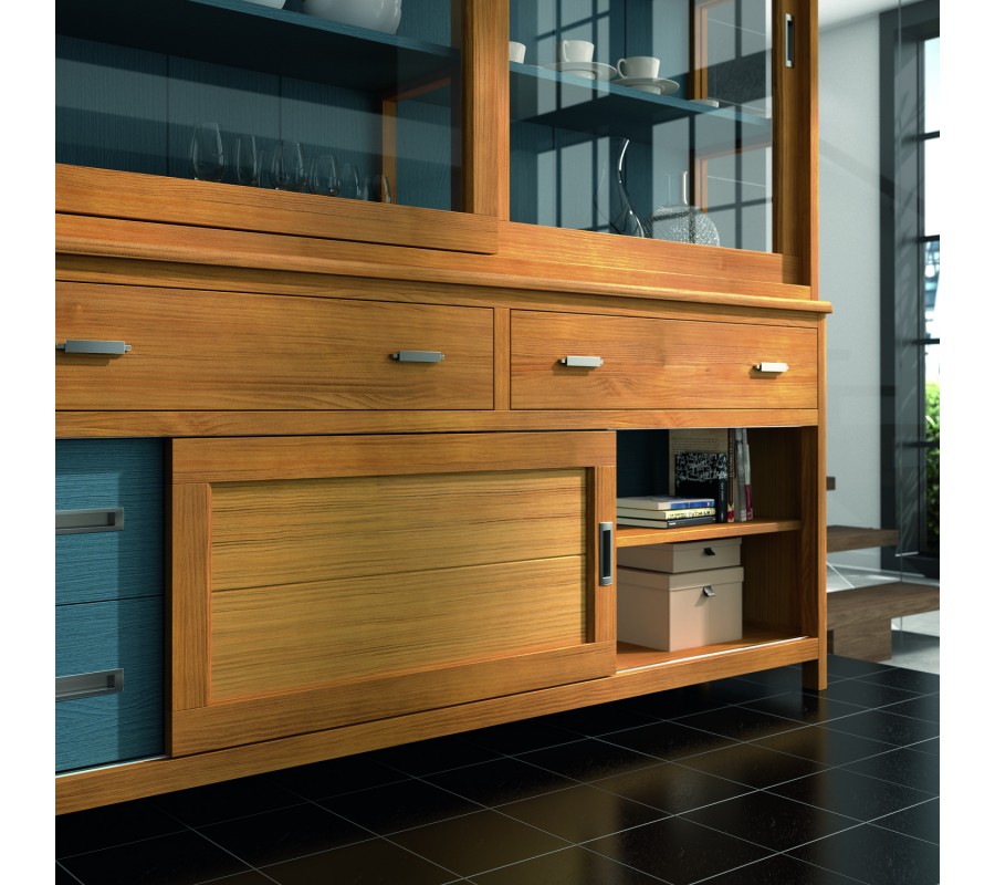 Luxusná vitrína Cerdena z masívneho dreva s posuvnými sklenenými dvierkami a praktickými zásuvkami 204cm