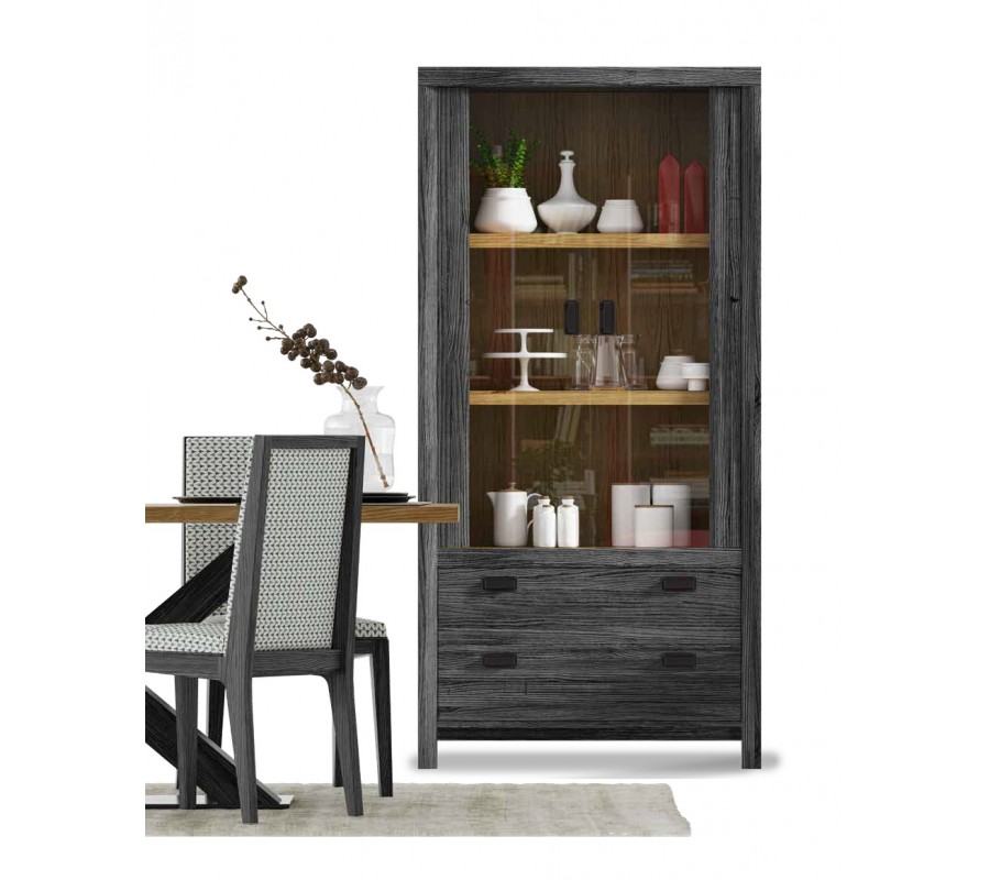 Luxusná moderná presklená vitrína Lyon z masívneho dreva s dvomi zásuvkami dvojdverová 98cm