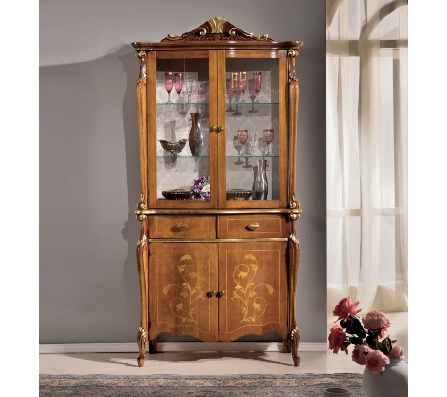 Luxusná klasická vitrína Pasiones z masívu s dvoma dvojdverovými skrinkami a dvoma zásuvkami 203cm