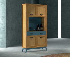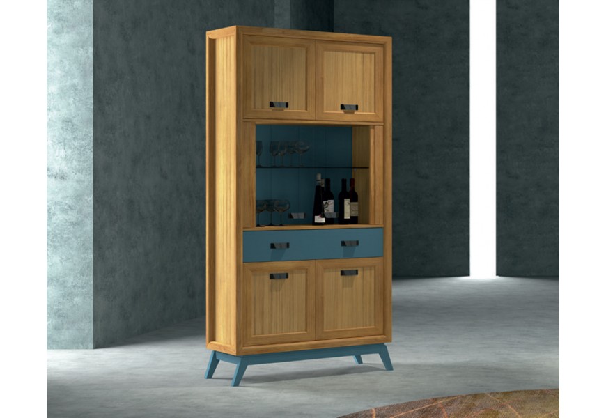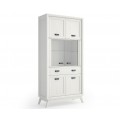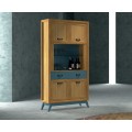 Masívna elegantná vitrína Rodas so sklenenými dvierkami a s párom dvoch masívnych dvierok so zásuvkou 201cm