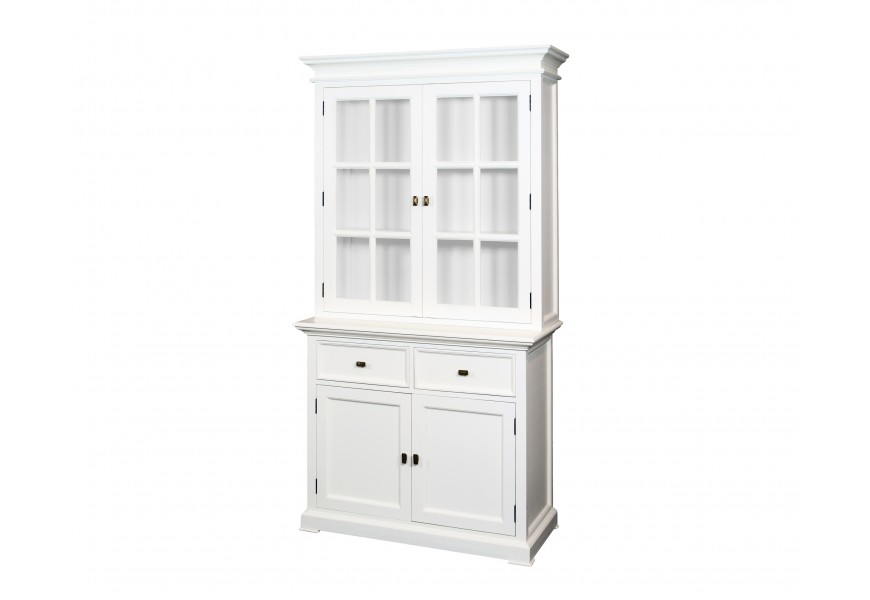 Luxusnáý biely rustikálny kredenc Belliene z masívneho dreva bielej farby s plnými a presklenými dvierkami a zásuvkami 210cm