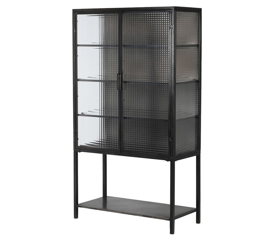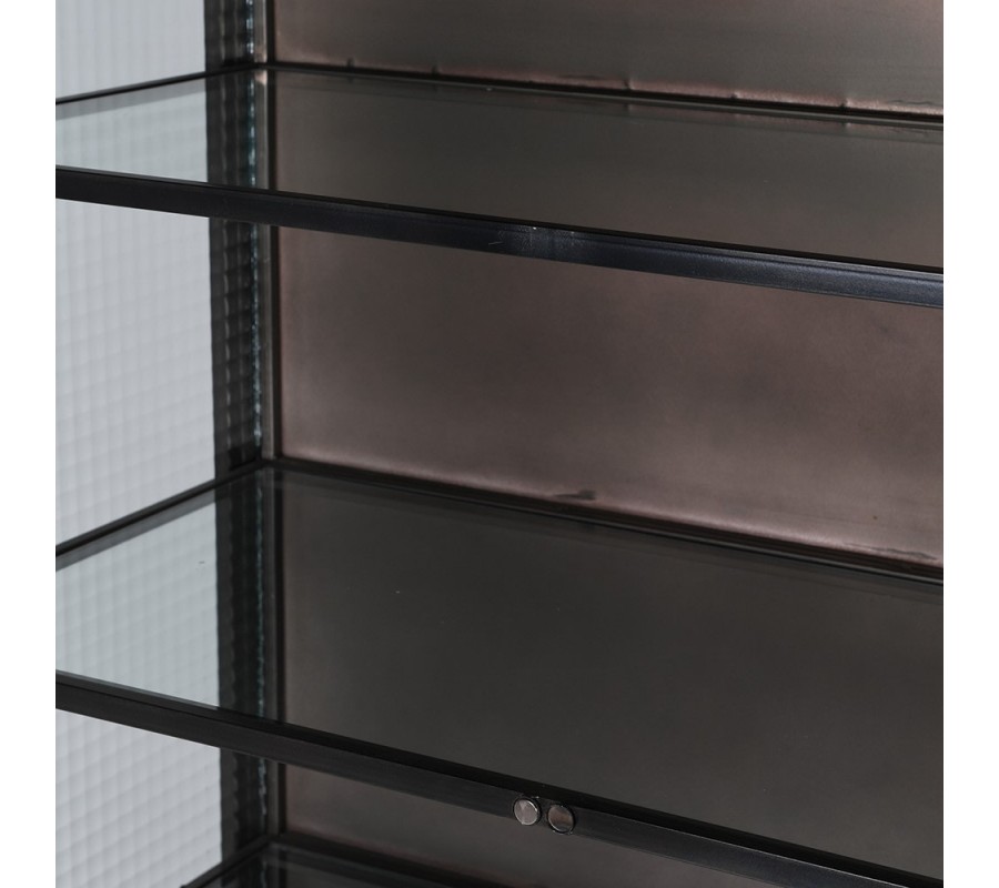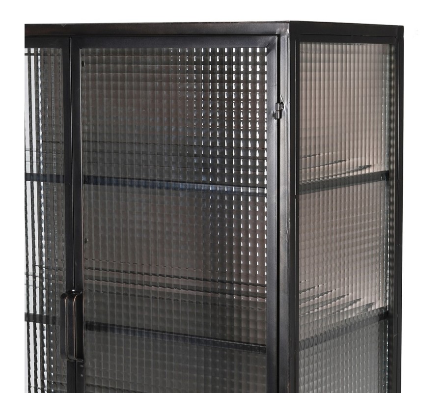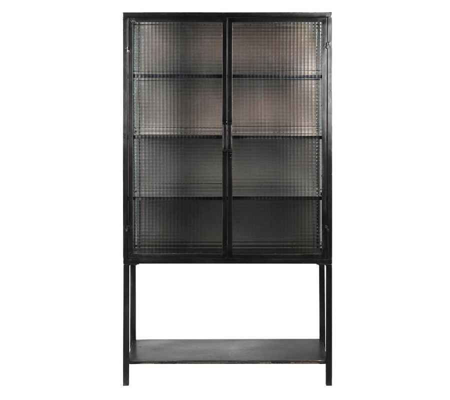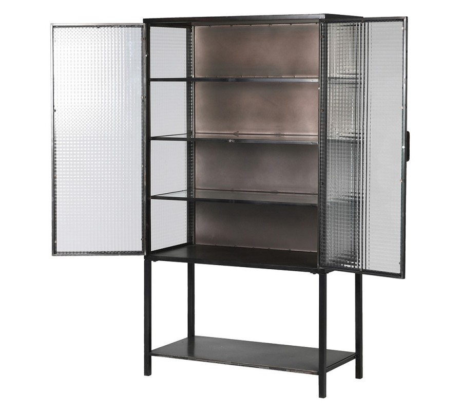 Industriálna skrinka Steellytical s čiernou kovovou konštrukciou s dvoma presklennými dvierkami s vnútornými poličkami 160cm