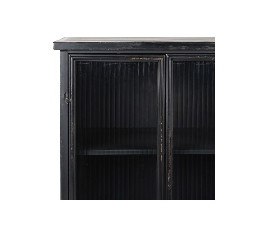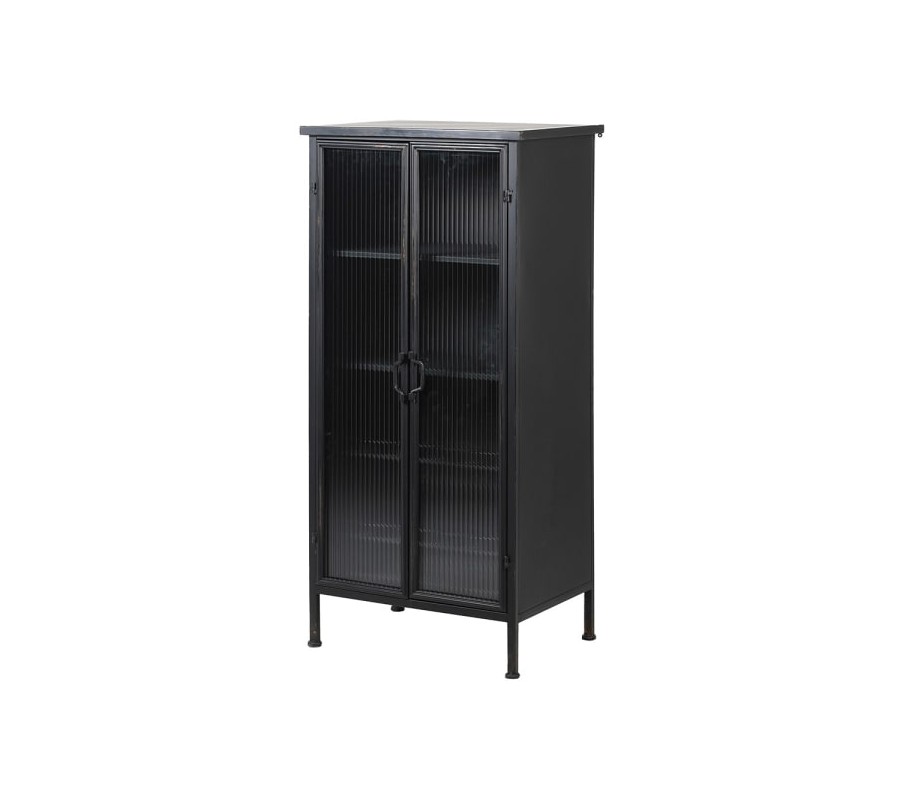 Industriálna kovová vitrína Steelytical v čiernom prevedení s poličkami a sklenenými dvierkami 120cm