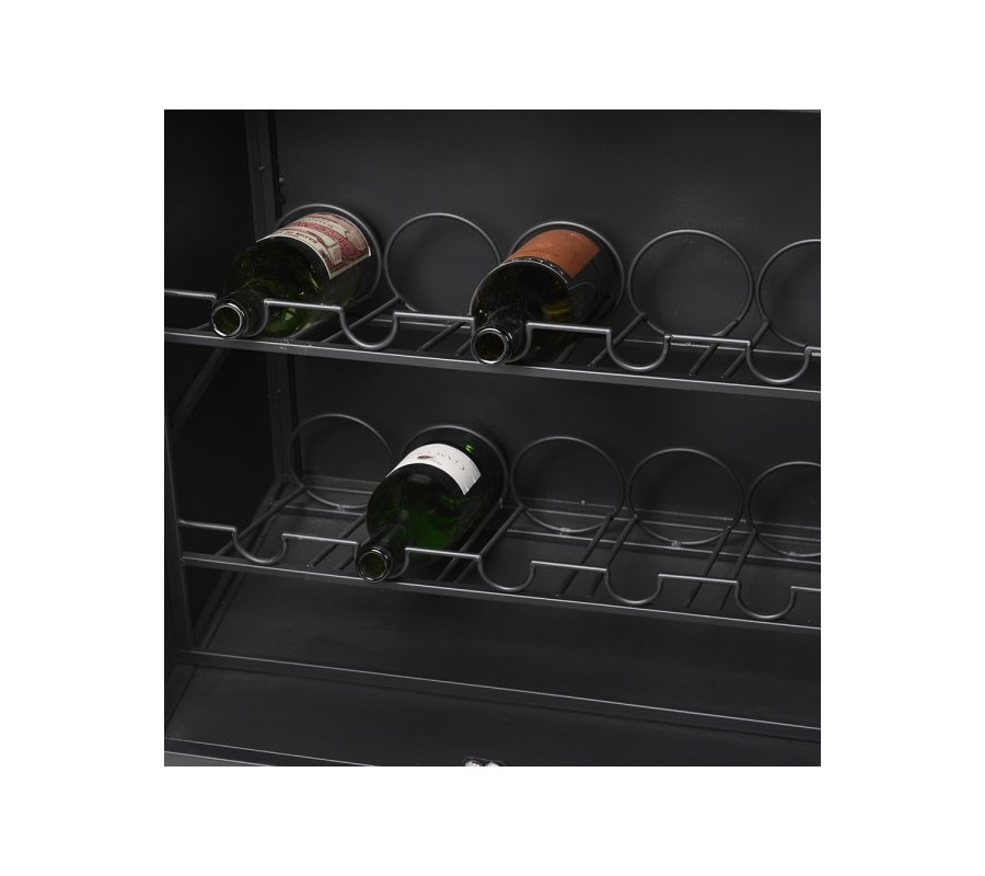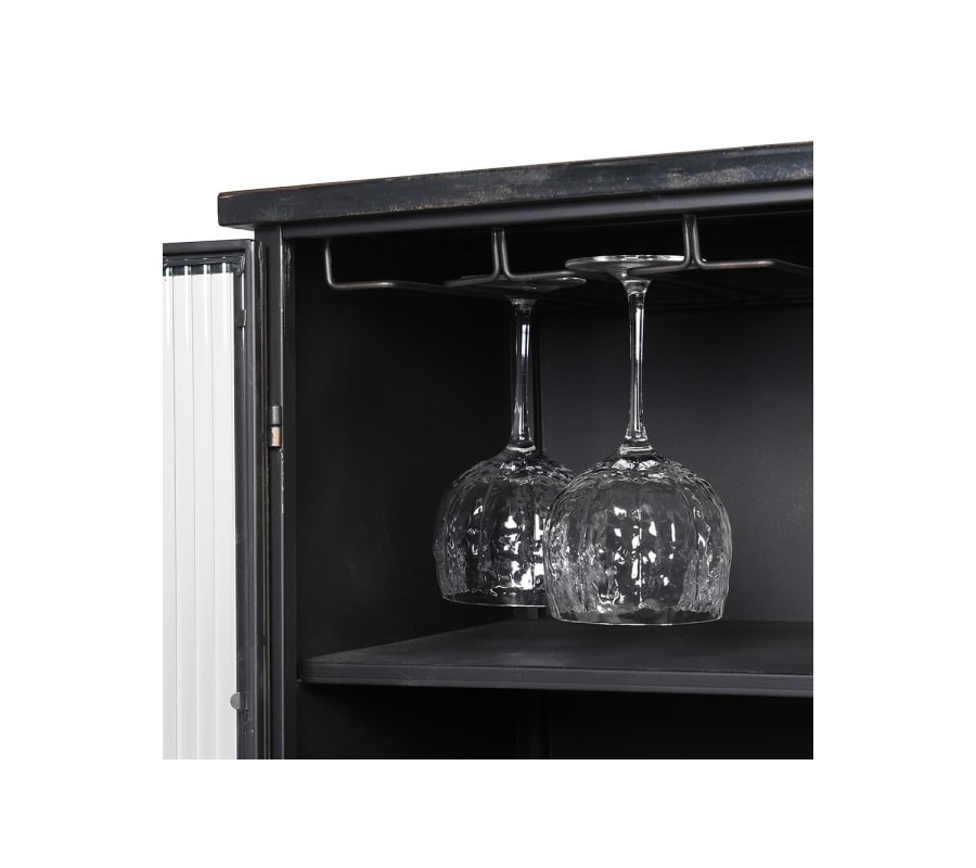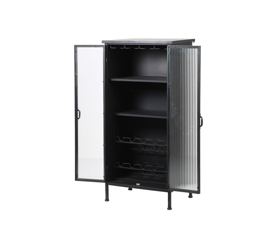 Dizajnová vitrína Stellytical je typickým predstaviteľom industriálneho štýlu. Vyznačuje sa jeho typickými charakteristikami ako dôrazom na fuknčnosť a jedinečným vzhľadom využívajúcim nahrubo opracované či neopracované surové materiály. Vďaka tomuto dizajnovému vzhľadu vhodne doplní napríklad alternatívne ladené loftové byty, moderné kaviarne, vinárne či bary alebo priestory tématicky ladených hotelov. Vitrína disponuje čiernou konštrukciou zo železa a ponúka úložný priestor v podobe klasických poličiek a priehradok na fľaše. Štýlové sklenené dvierka s jemným zvislým členením dopĺňajú celkový industriálny vzhľad a zároveň vďaka nim budete mat vždy prehľad o tom, čo sa vo vašej vitríne nachádza, pričom budú vaše predmety ochránené pred prachom. Dvierka dopĺňajú jednoduché čierny úchyty. Industriálny vzhľad vitríny Steellytical nádherne vynikne v kombinácii s kovovými doplnkami a nábytkom z masívneho dreva. Odporúčame ju doladiť do tmavšie ladených priestorov jedální, obývačiek alebo pracovní.