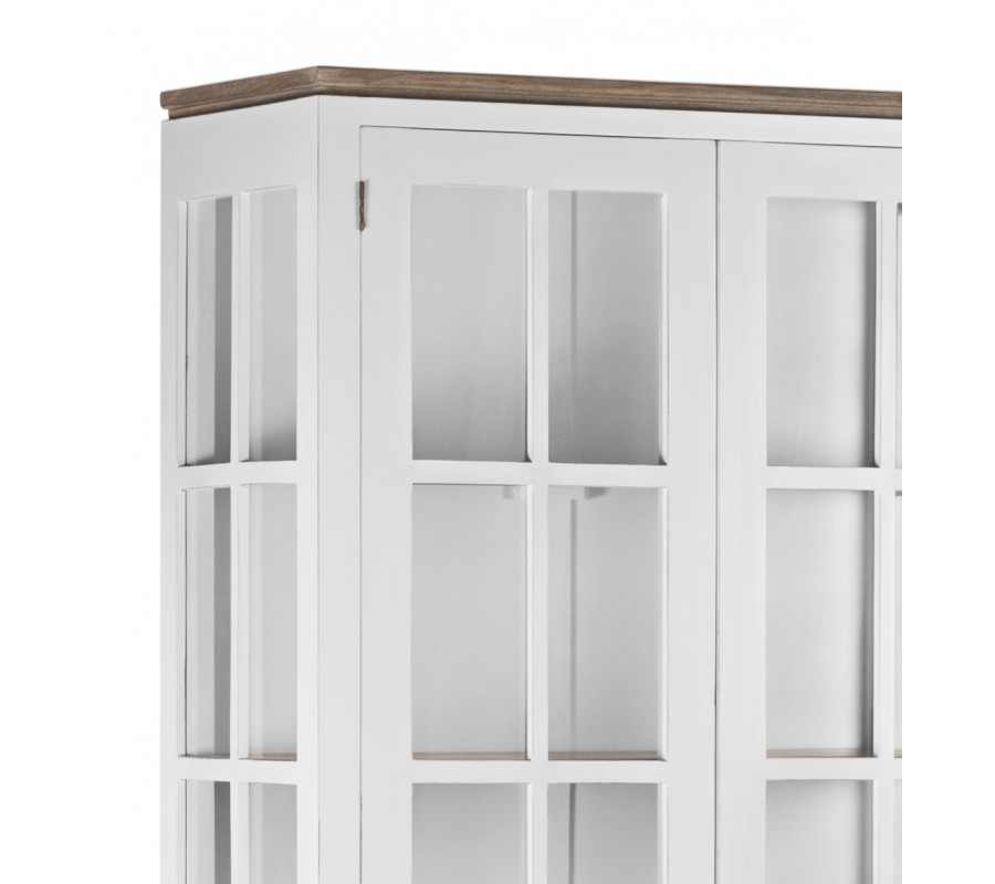 Luxusná vitrínaz našej kolekcie Blanc vo svojom dizajne prepája prvky klasického, koloniálneho a moderného štýlu. Je vyrobená z kvalitného masívneho dreva mindi, ktoré je charakteristické svojou odolnosťou a vášmu nábytku zabezpečí dlhú životnosť. Hladká povrchová úprava v bielom prevedení pôsobí elegantným dojmom a zapadne aj do modernejšie ladených priestorov. Priestranná vitrína ponúka bohatý úložný priestor, ktorý možno využiť na uloženie keramiky či porcelánu, kníh, dokumentov, dekorácií či rôznych iných predmetov v závislosti od miestnosti, do ktorej ju umiestnite. Vďaka piatim priestranným poličkách so sklenenými dvierkami je ideálna na vystavenie vecí, ktoré chcete mať stále na očiach, no zároveň budú uchránené od prachom či iným možným poškodením. Kontrastným prvkom k bielemu telu je vrchná doska a poličky v prírodnej hnedej farbe, ku ktorým ladia aj bronzové kovové úchyty na dvierkach. Vitrína Blanc si svoje miesto nájde v luxusných priestoroch obývačiek, pracovní či spální a má naozaj všestranné využitie a svojím elegantným nadčasovým dizajnom spríjemní vaše priestory a zároveň prakticky poslúži. Dokonalú kombináciu vytvorí s ďalšími kúskami z našej rovnomennej kolekcie, prípadne iným masívnym nábytkom a čalúnenou sedačkou či kreslom v koloniálnom štýle.
