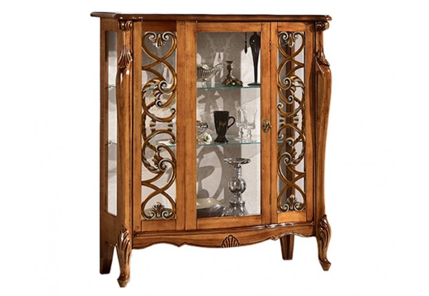Baroková vyrezávaná nízka vitrína Pasiones z masívneho dreva so zdobenými presklenými dvierkami 120cm
