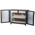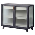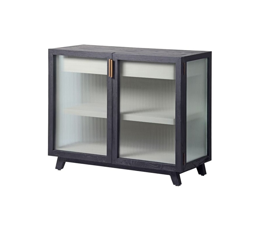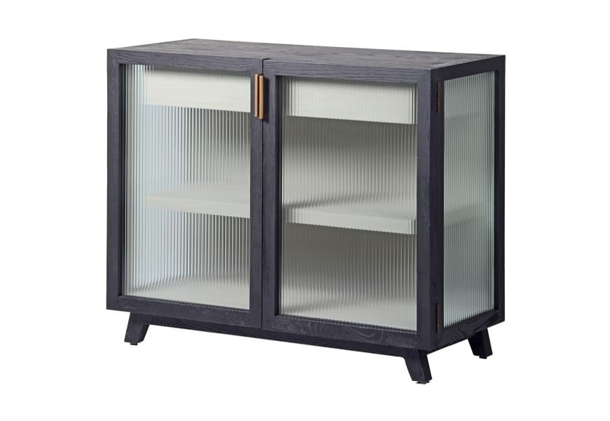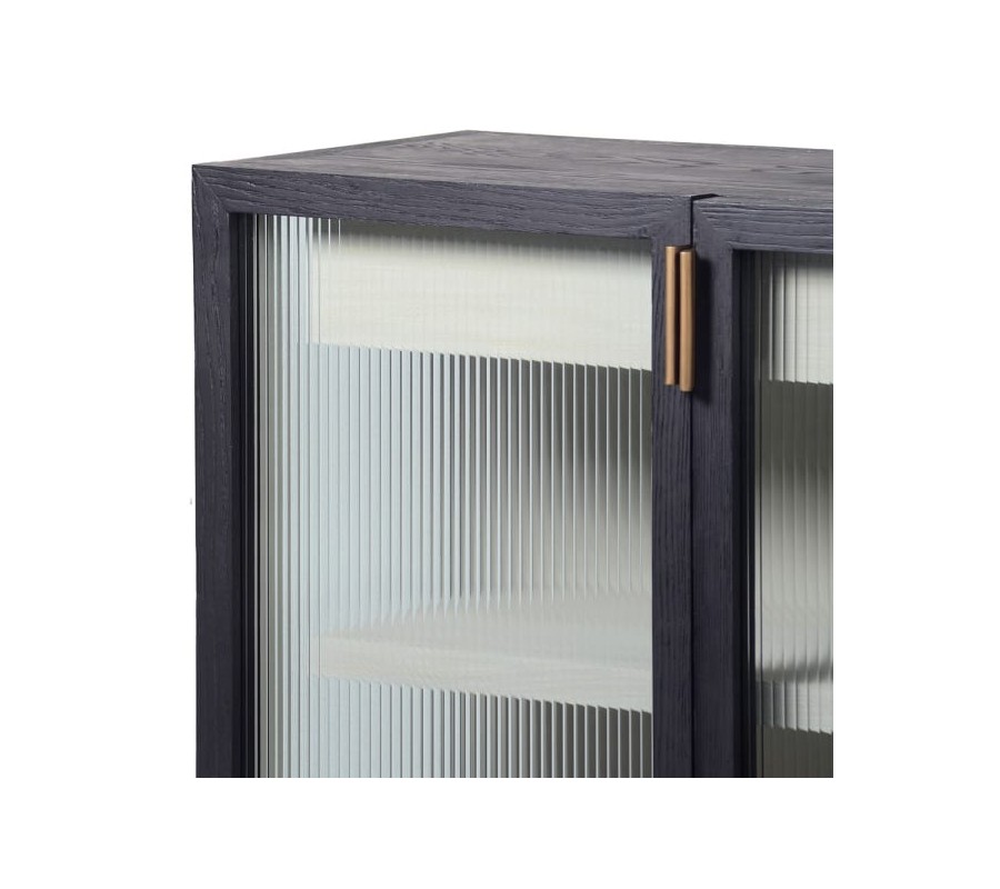 Moderná vitrína Kaleon z masívneho dreva čiernej farby a dvierkami z ryhovaného skla 105cm