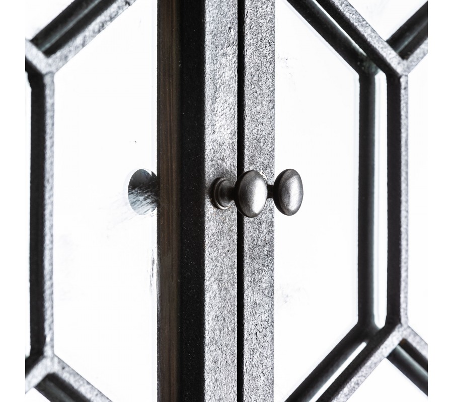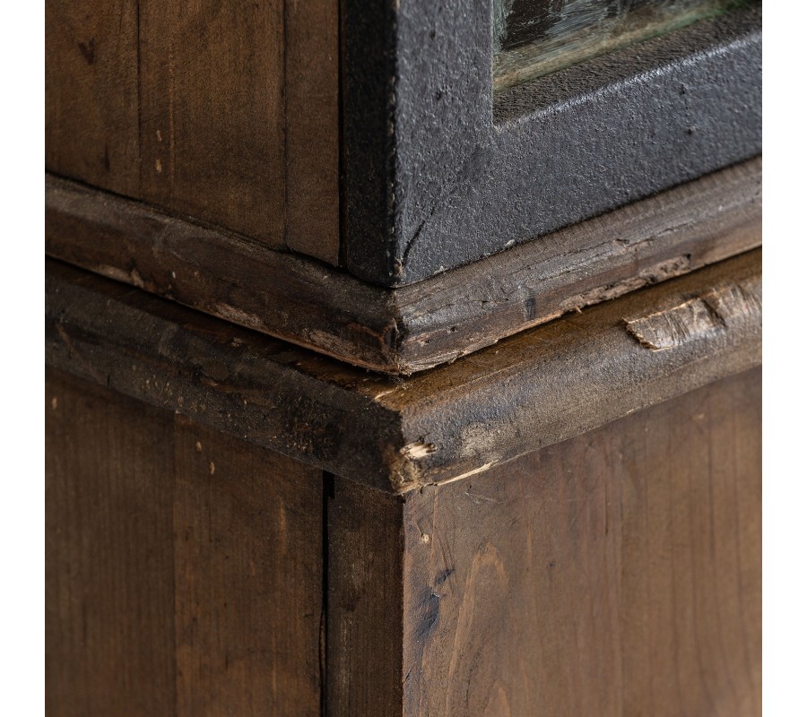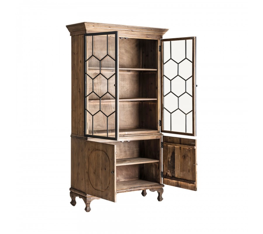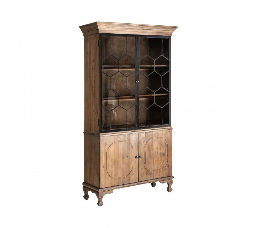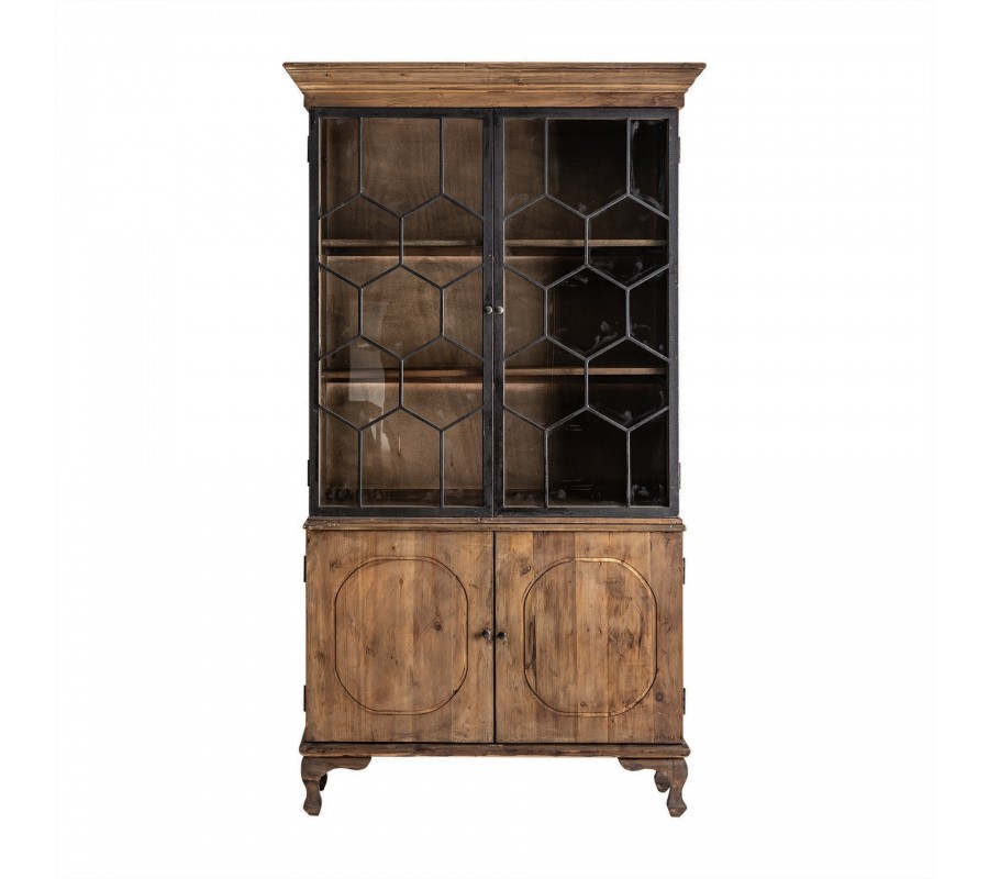 Prineste jedinečný vintage vzhľad do Vašej obývačky vďaka luxusnej vitríne z kolekcie vidieckeho nábytku Lavia Pine, ktorý svojím mohutným prevedením upúta na seba pozornosť. O kvalite vitríny Lavia Pine Vás presvedčí jej vyhotovenie z recyklovaného borovicového masívu, ktoré je doplnené dizajnovými prvkami pripomínajúcimi efekt zostarnutia, čo vytvorí jedinečný vintage vzhľad. Dizajnová stránka taktiež disponuje precíznym, ručným vyrezávaním v oválnom tvare na spodných dvierkach skrinky, štýlovými tvarovanými nožičkami, ktoré pripomínajú rustikálny štýl a prečnievajúcou vrchnou časťou vitríny, čo vytvorí štýlový dizajnový efekt. Najvýraznejším kontrastným prvkom sú avšak dvierka so železným dekorom v tvare šesťuholníkov, ktoré vytvoria nádych industriálneho štýlu. Praktická stránka Vitríny Lavia Pine Vám ponúkne vnútorný úložný priestor s dvomi poličkami za sklenenými dvierkami, a s jednou poličkou v spodnej skrinkovej časti. Luxusnú masívnu vitrínu Lavia Pine odporúčame kombinovať vo vidieckych interiéroch s masívnym nábytkom, a taktiež s čiernymi kovovými a masívnymi doplnkami.