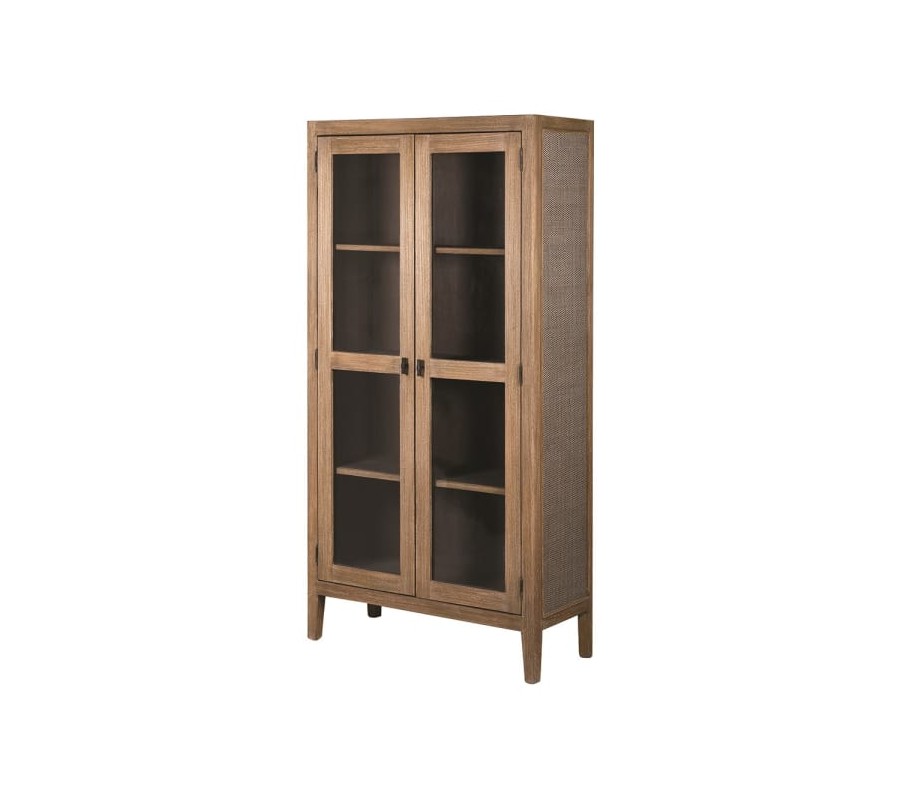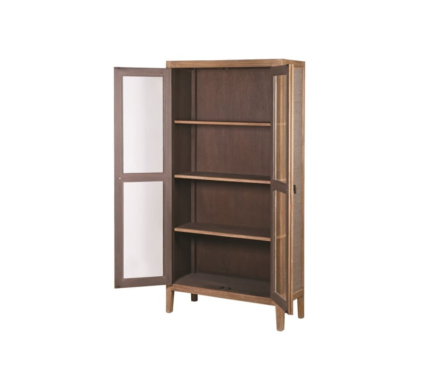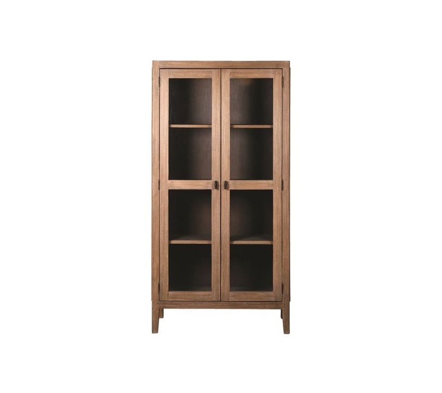 Vidiecka vitrína Barbadosa z masívneho dreva v prírodnom hnedom prevedení s poličkami a sklenenými dvierkami 180cm