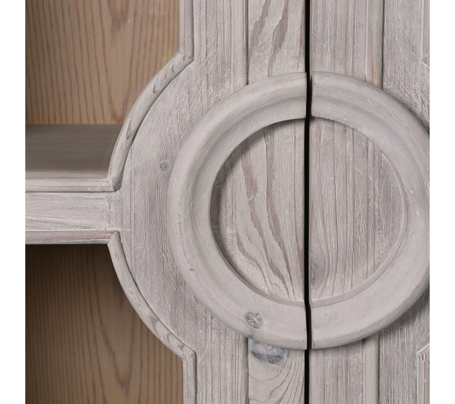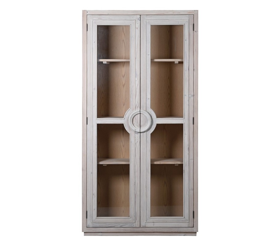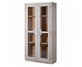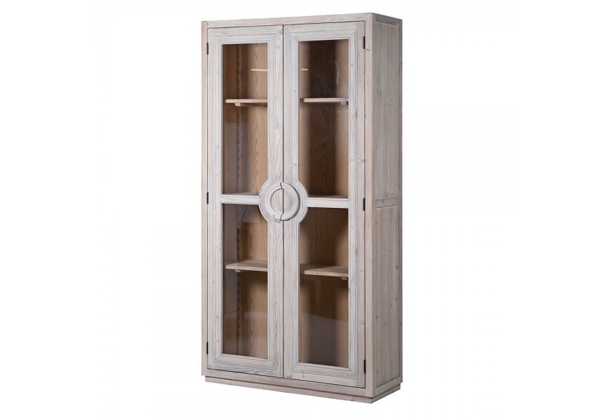 Vidiecka masívna vitrína Jurmala svetlohnedej farby s poličkami a sklenenými dvierkami 200cm