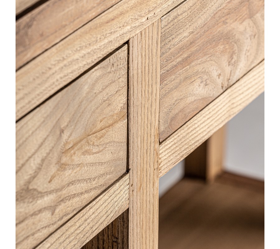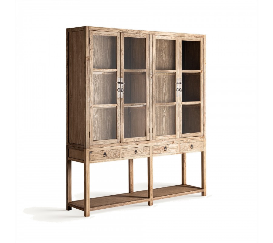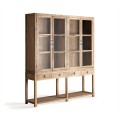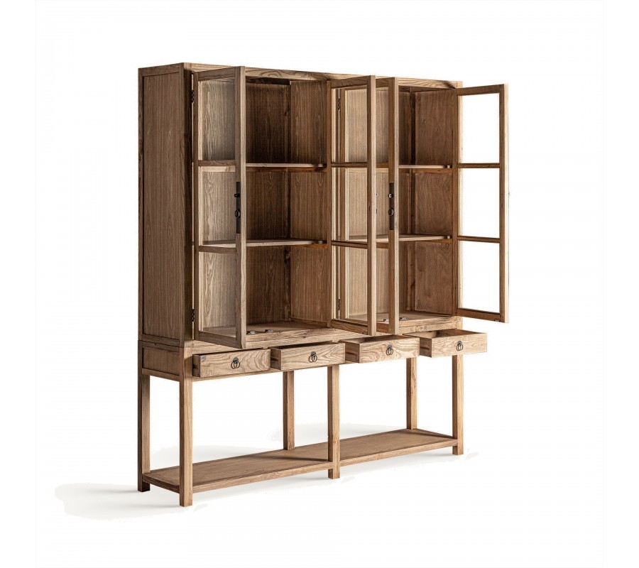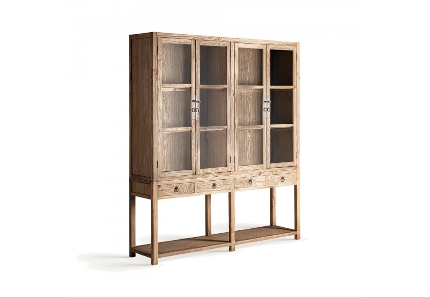 Luxusná vitrína Ethon s dvojitými presklenými dvierkami a štyrmi zásuvkami z bukového dreva 225 cm