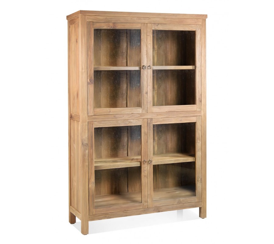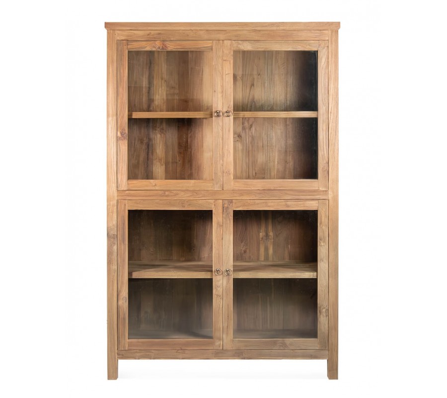Luxusná vidiecka štvordverová vitrína Tulum z masívneho teakového dreva v svetlej hnedej farbe s presklennými dvierkami 182 cm