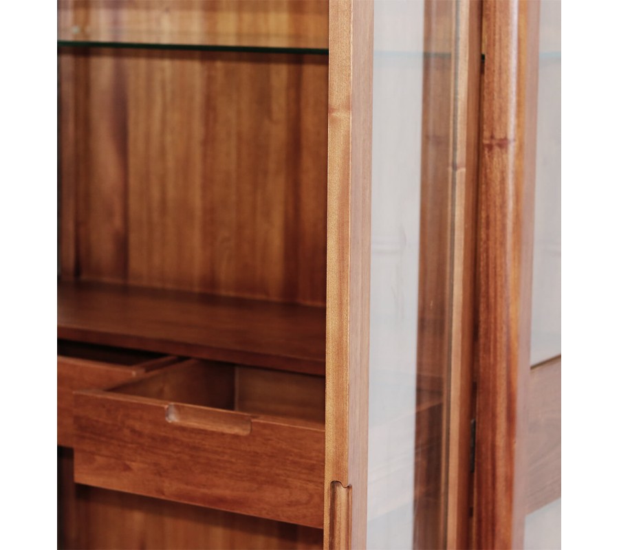 Drevené časti vitríny sú vyrobené z luxusného mahagónového dreva, ktoré je v nábytkárstve populárne vďaka svojej pevnosti a odolnosti. Nábytok je tak kvalitný a dlhotrvácny. Okrem toho oceníte aj nádhernú bohatú hnedú farbu s charakteristickým teplým červenkastým podtónom. Na hladkých povrchoch vyniká aj prirodzená kresba letokruhov, ktorá dodáva vitríne naturálny prvok.