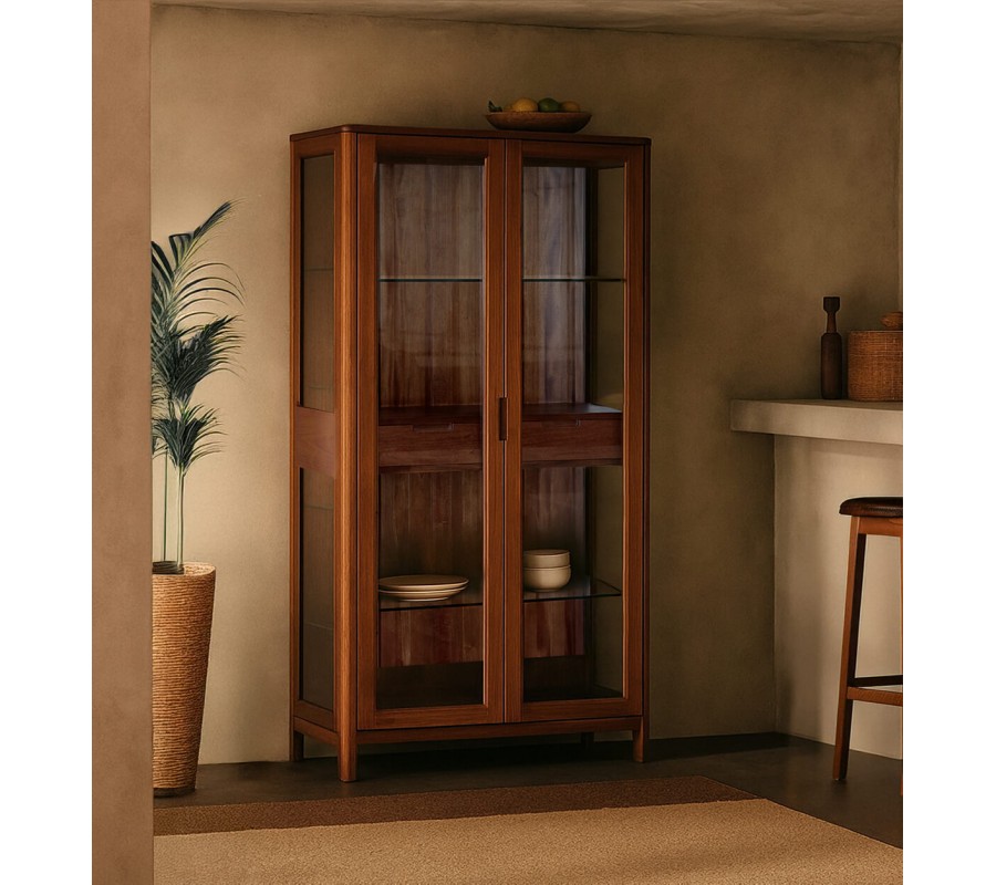 Vitrína Liberia prinesie do vašej obývačky či jedálne pôsobivý dizajnový prvok s nádychom koloniálneho luxusu. Presklené steny a dvierka umožňujú bezpečné vystavenie vašich obľúbených kníh či dekorácií, zatiaľ čo exkluzívne mahagónové drevo pôsobí teplým dojmom a očarí vás svojou bohatou farebnou paletou.