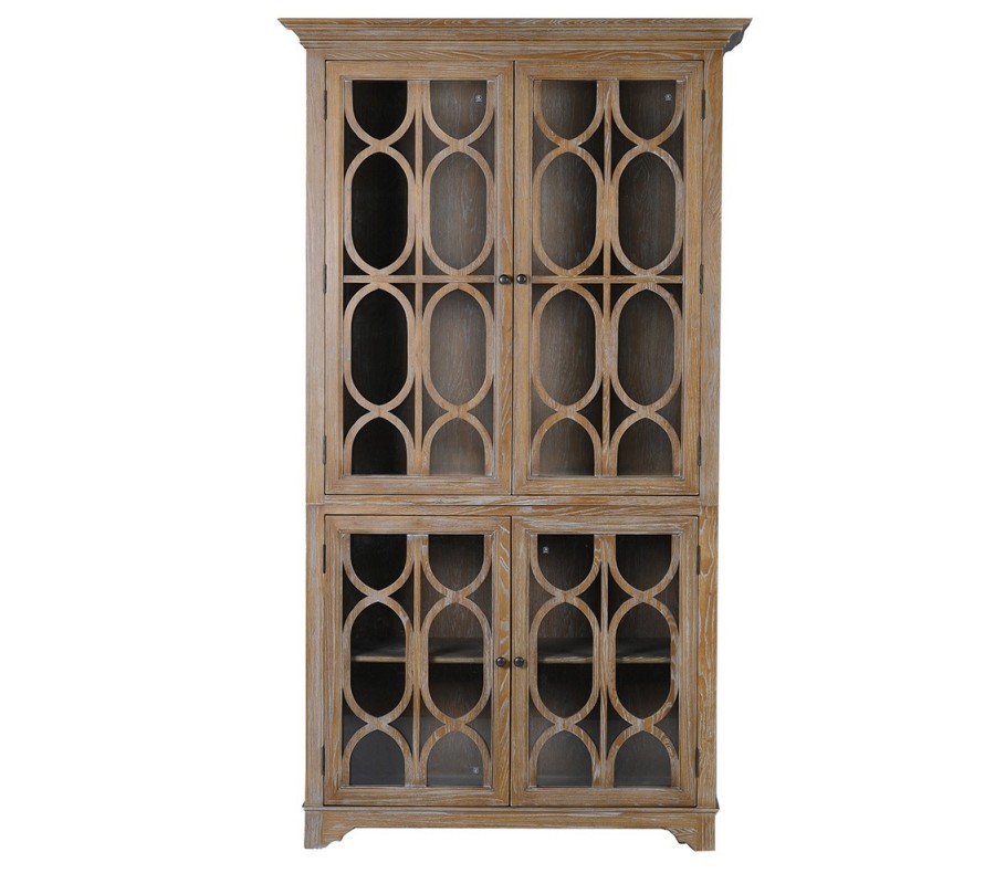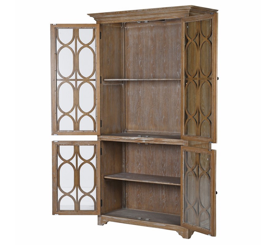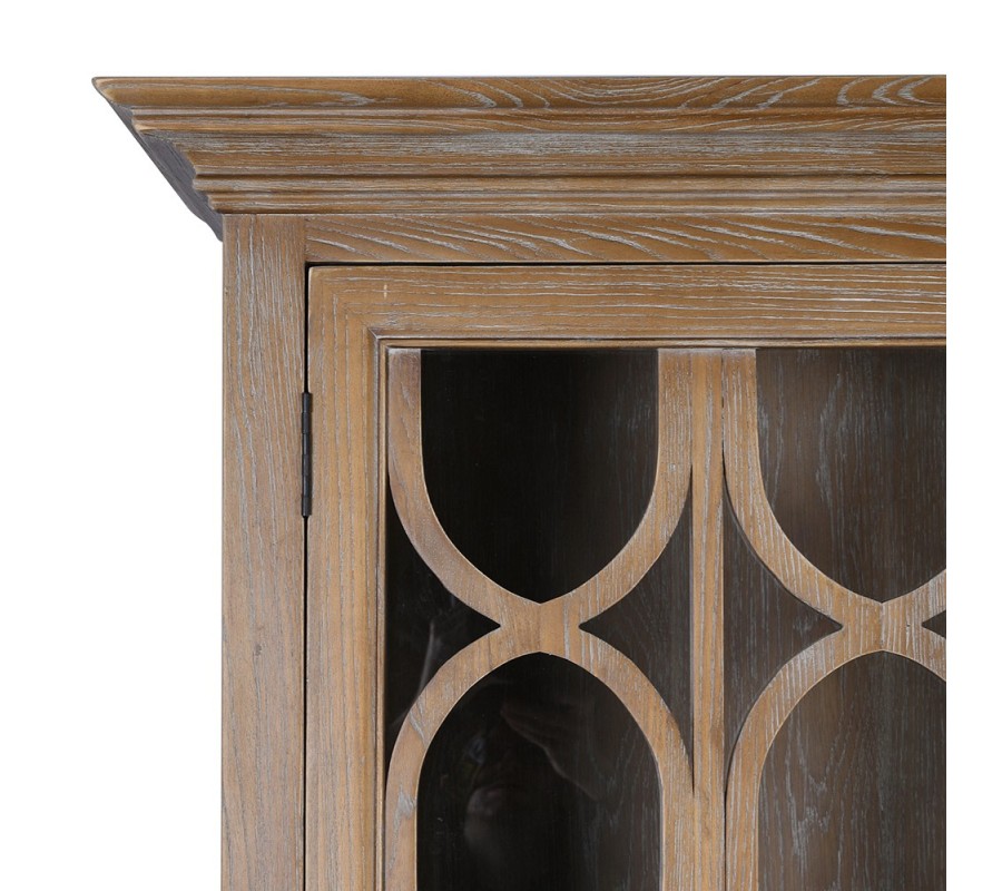 Luxusná koloniálna štvordverová vitrína Portalis s prírodnou patinou a ornamentálnymi presklenými dvierkami 220 cm