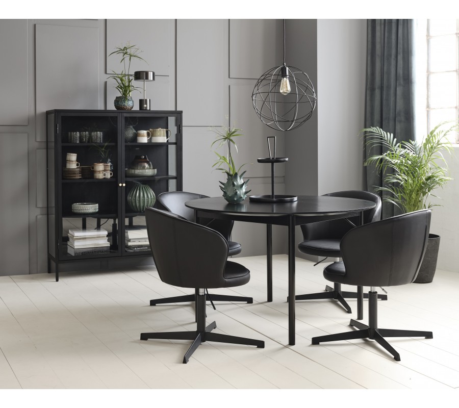Vitrína Soeren výborne doplní jedáleň zariadenú v industriálnom štýle, kde ju môžete skombinovať so stolom či stoličkami s tmavými kovovými podstavami. Hodí sa tiež do modernej obývačky, k výraznej farebnej sedačke a zlatým doplnkom, alebo k nábytku zo skla a chrómu, s ktorým vytvorí čistú sofistikovanú kompozíciu. Skvelou voľbou sú aj ďalšie kúsky z rovnakej kolekcie Soeren, ktoré nájdete v našej ponuke.