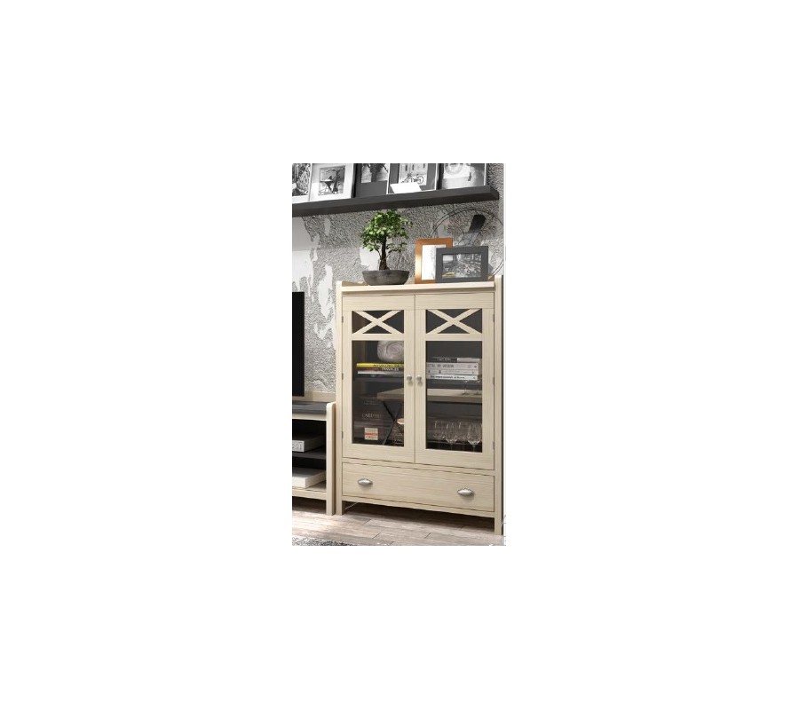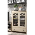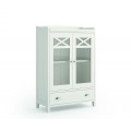 Dizajnová moderná vitrína Verona z masívneho dreva so sklenenými dvierkami a zásuvkou 128cm