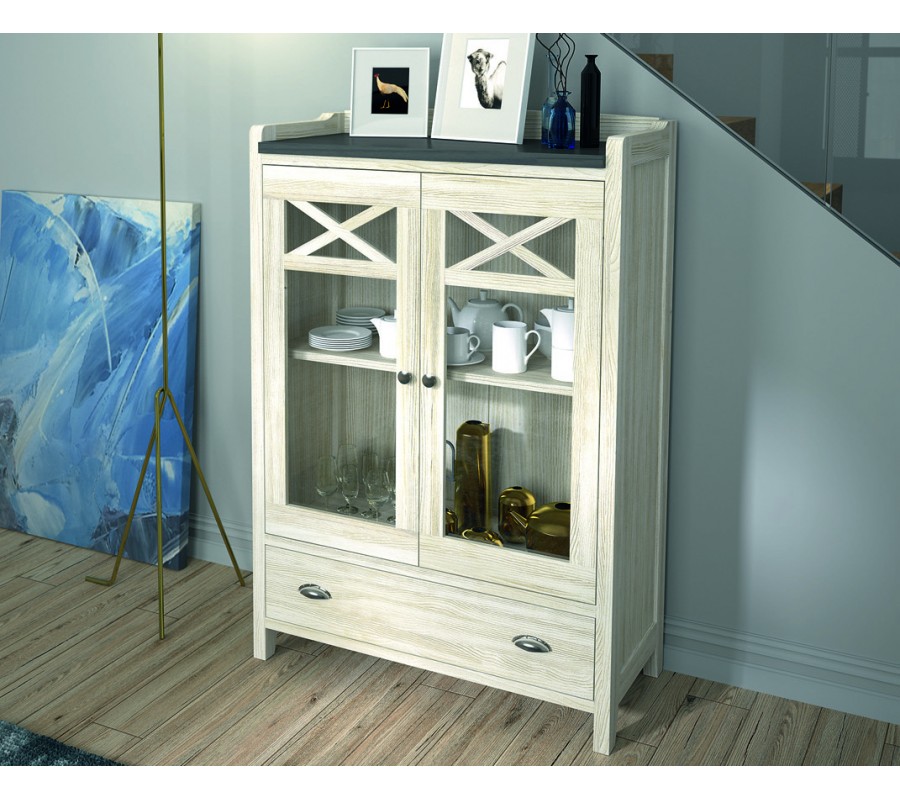 Luxusná vitrína z kolekcie inšpirovanej romantickým talianskym mestom Verona predstavuje prepojenie kvalitného materiálu a elegantných minimalistických tvarov. Tento jedinečný kúsok je inšpirovaný modernými trendami v prepojení s tradíciou a vzniká tak nadčasový vzhľad vhodný do moderne ale i klasickejšie ladených interiérov. Vitrína zaujme predovšetkým vďaka svojmu čistému minimalistickému vzhľadu, ktorému dominujú  zaoblené hrany zjemňujúce celkový dizajn. Poskytuje úložný priestor v podobe poličiek so sklenenými dvierkami a praktickej zásuvky v spodnej časti. Dvierka vo vrchnej časti zdobí zaujímavý dizajn tvorený prekrížením drevených prvkov. Kvalitné masívne drevo zabezpečí dlhú životnosť a svieži naturálny vzhľad.  Farebné prevedenie dreva je možné si navoliť z ponúkaných farieb v priloženom vzorkovníku. Vitrína Verona je vhodná na umiestnenie v jedálni či obývačke zariadených v moderno, vidieckom alebo rustikálnom štýle.
