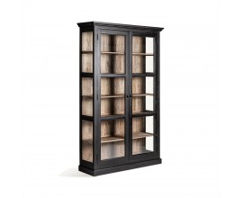 Luxusná čierna vitrína Metropolitan z masívneho mangového dreva v odtieňoch prírodnej hnedej s presklenými dvierkami 210 cm
