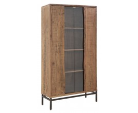Štýlová industriálna vitrína Sheesham z masívneho dreva 140cm