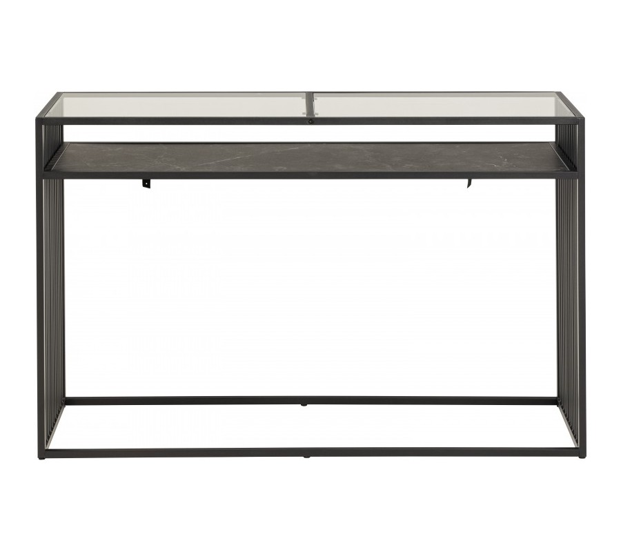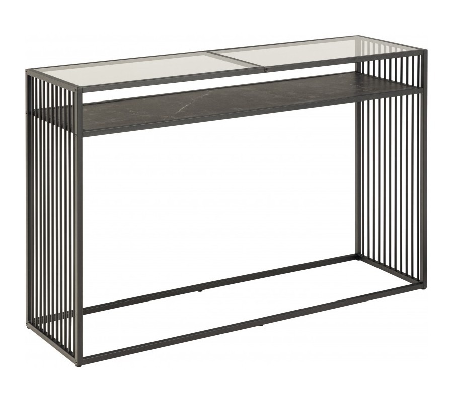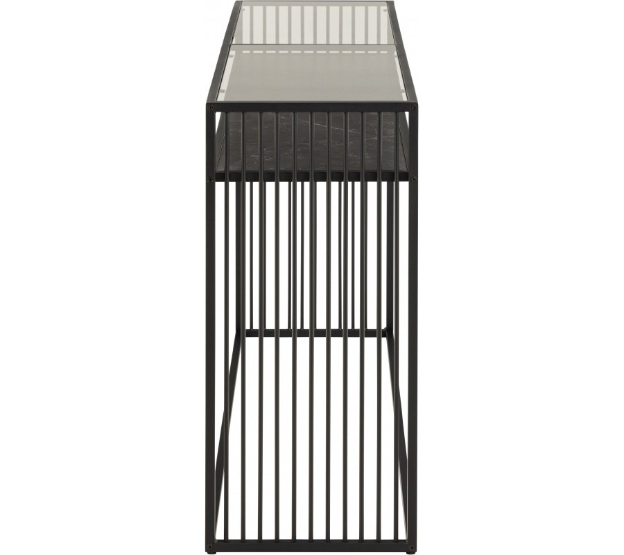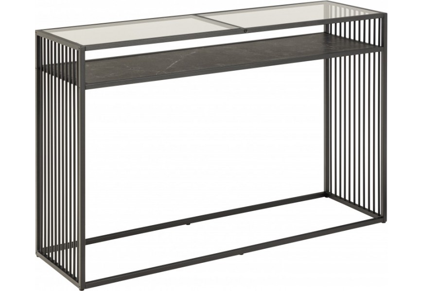 Industriálna konzola Westford s čiernou kovovou konštrukciou s mramorovou a sklenenou policou 120cm