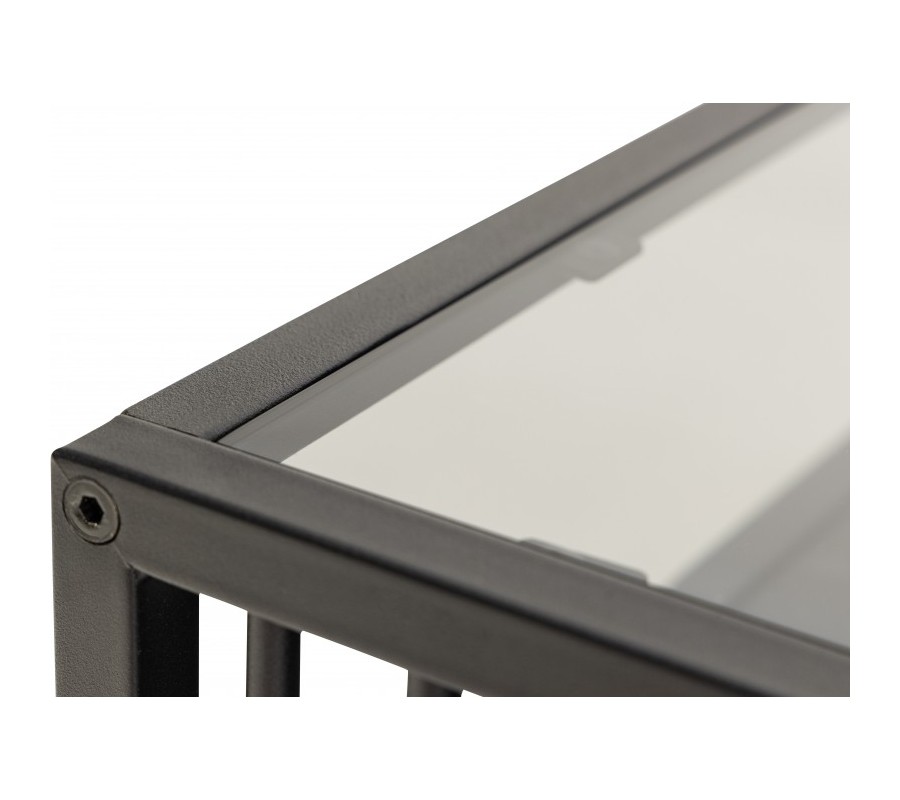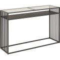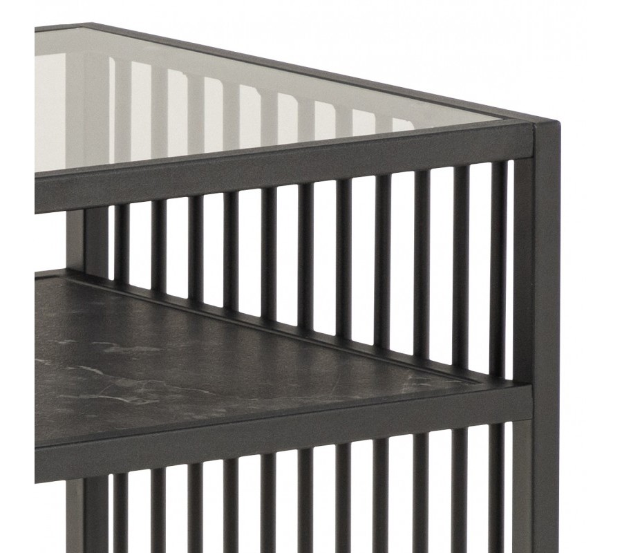 Praktický a štýlový pomocník v podobe konzolového stolíka z kolekcie Westford v industriálnom štýle, hravo zaplní miesto aj vo vašom interiéri. Stolík v obdĺžnikovom tvare pozostáva z čiernej kovovej konštrukcie v matnom prevedení, ktorú po stranách podopiera niekoľko pilierov zabezpečujúcich dokonalú stabilitu a pevnosť prevedenia. Konzola Westford okrem dizajnovej funkcie poslúži ako pomocník pri riešení miesta na odkladanie tých najdôležitejších vecí, ktoré chcete mať v predsieni po ruke. Vrchná doska z bezpečnostného skla je doplnená poličkou z MDF s povrchovou úpravou pripomínajúcou čierny mramor s bielym vzorom. Vďaka neutrálnemu a využiteľnému farebnému vyhotoveniu si stolík nájde svoje miesto popri komodách či skrinkách z kovu či mramoru na čiernych nožičkách so stirebornými doplnkami. Industriálna konzola Westford si svoje miesto nájde v predsieňach, vstupných halách či v pánsky ladených biznis priestoroch.