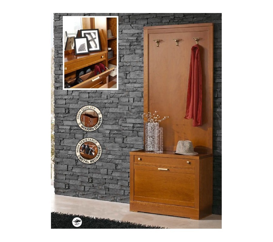 Luxusná chodbová zostava z kolekcie nábytku Carmen v sebe prepája nadčasový dizajn s kvalitným spracovaním z masívu bukového dreva, vďaka čomu ide o naozaj trvácny kúsok, ktorý bude Vašej domácnosti slúžiť naozaj dlhé roky. Zostava obsahuje stenu s troma kovovými vešiakmi a praktickú skrinku na topánky. Rovnako ako všetok nábytok kolekcie Carmen, je možné aj túto zostavu vyhotoviť v štyroch farebných prevedeniach podľa vzorkovníka. Produkt na fotografií je vo farebnom prevedení čerešňa.