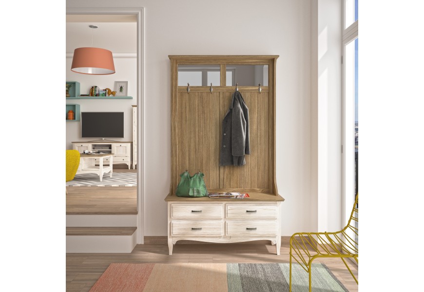 Exkluzívna chodbová zostava z kolekcie FONTANA sa radí medzí nadčasový, masívny nábytok prvotriednej kvality. Zostava okrem elegantného vzhľadu s prvkami rustikálneho štýlu ponúka množstvo praktického úložného priestoru pre vaše topánky, zvrchníky, či iné doplnky. Chodbovú zostavu možno rovnako ako všetok nábytok kolekcie FONTANA farebne upraviť na mieru podľa vzorníka dreva. Vašu požiadavku stačí napísať do poznámky pri vytváraní objednávky.