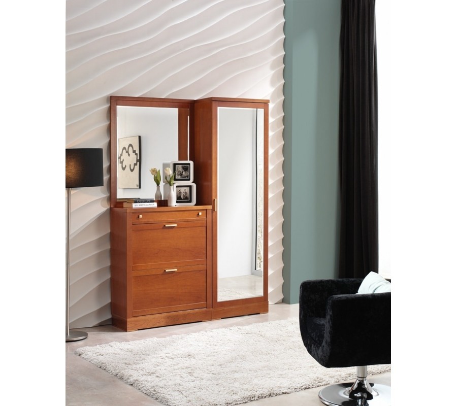 Exkluzívna zostava do predsiene Carmen v sebe snúbi prvky rustikálneho štýlu s odkazom na moderný dizajn. Osloví každého, kto si potrpí na precízne detailné prevedenie a rovnomerné línie. Je vyrobená z masívneho dreva chráneného dyhou s povrchovou úpravou, ktorá necháva vyniknúť prirodzenú štruktúru dreva. Je možné ju vyrobiť v prevedení orech alebo čerešňa, podľa vzorkovníka. Krásne oživí rustikálne zariadené interiéry a vďaka jednoduchosti dizajnu rovnako vhodne zapadne aj do moderných priestorov, v ktorých vytvorí príjemnú teplú atmosféru. Zostava sa skladá z úzkej šatníkovej skrinky o rozmere 60cm, zrkadla s masívnym rámom a vysokého dreveného botníka so zásuvkou. Chodbovú zostavu Carmen odporúčame kombinovať s ďalšími kúskami nábytku z kolekcie Carmen a pre dokonalý dojem ju môžete doplniť dekoráciami svetlých alebo metalických farieb.