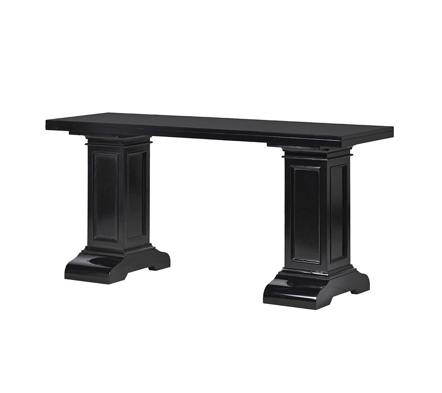 Exkluzívna rustikálna konzola Wielton Nero v čiernej farbe z kolekcie Wielton Nero zapadne do rustikálneho interiéru. Vyrobená je z dreveného masívu a má obdĺžnikový tvar. Tvoria ju dve mohutné nohy. Je vhodná na uskladnenie menších predmetov, izbových rastlín poprípade na výstavu. Dĺžka konzoly je 160 cm, čo z nej tvorí dokonalú, dlhú použiteľnú plochu. Vhodnou kombináciou by boli prvky v zámockom, rustikálnom štýle.